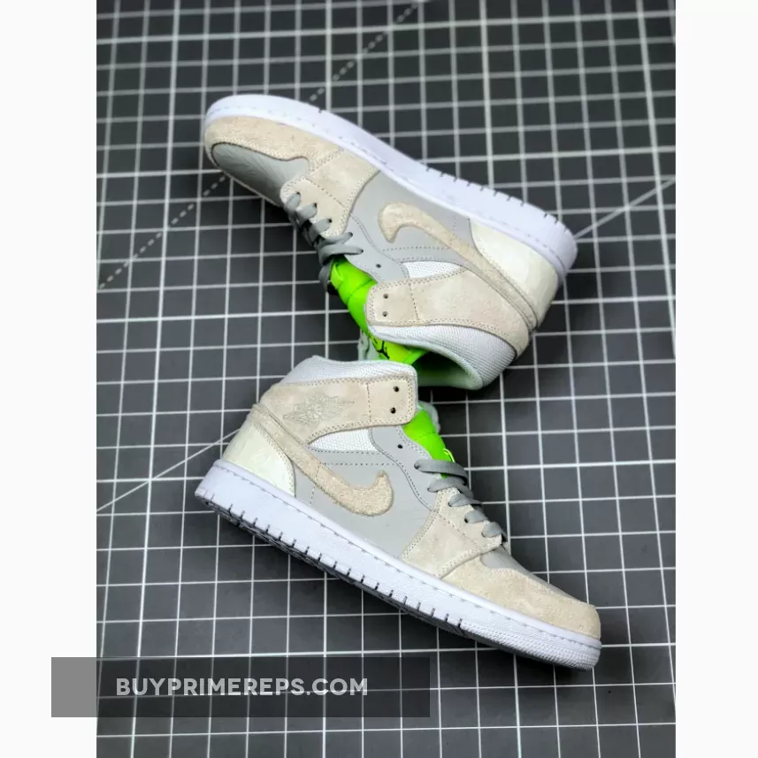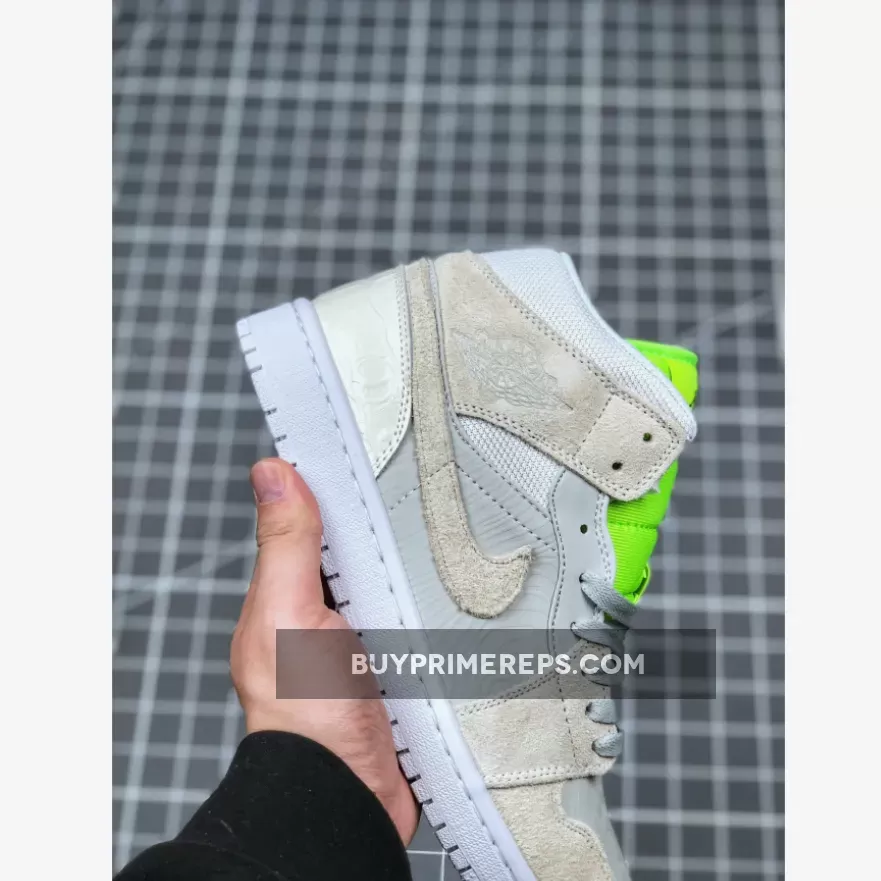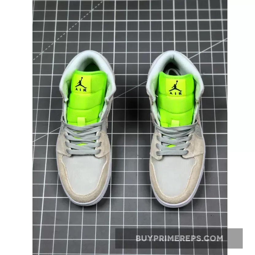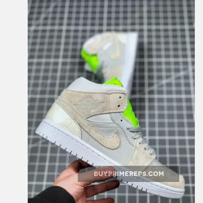 The Air Jordan 1 Mid Grey Volt is a stylish and eye-catching sneaker that combines basketball performance with street style flair. Dressed in a unique Vast Grey, Ghost Green, and White color scheme, this mid-top iteration of the Air Jordan 1 is sure to turn heads.