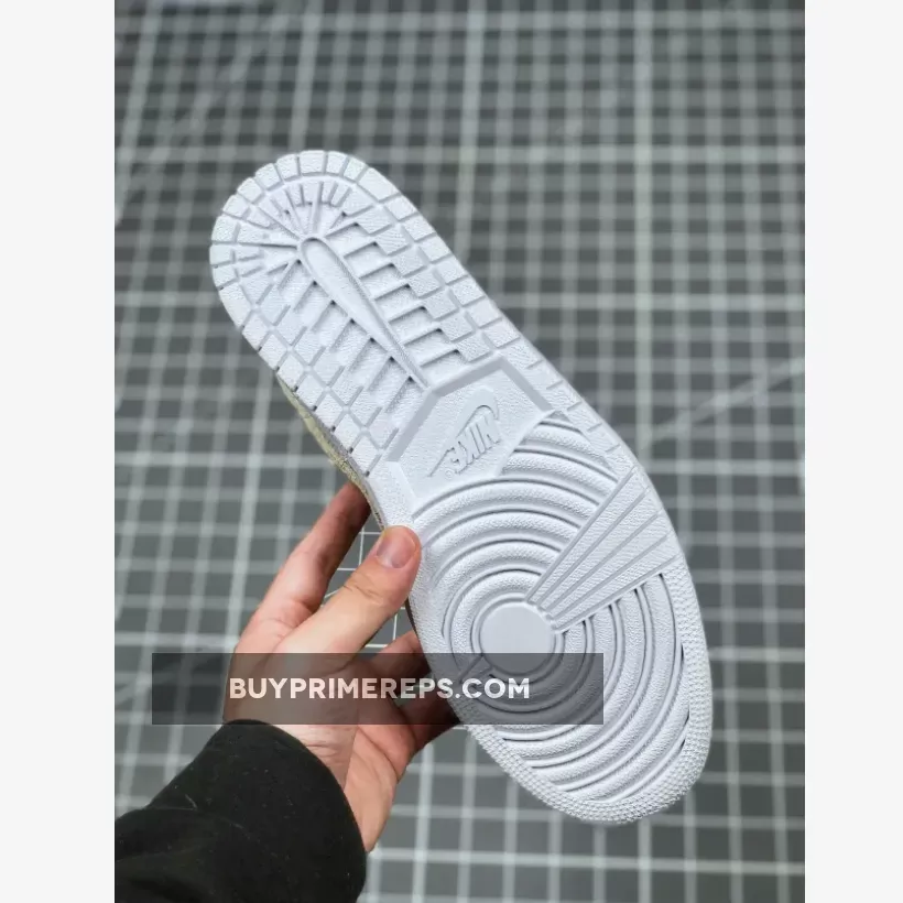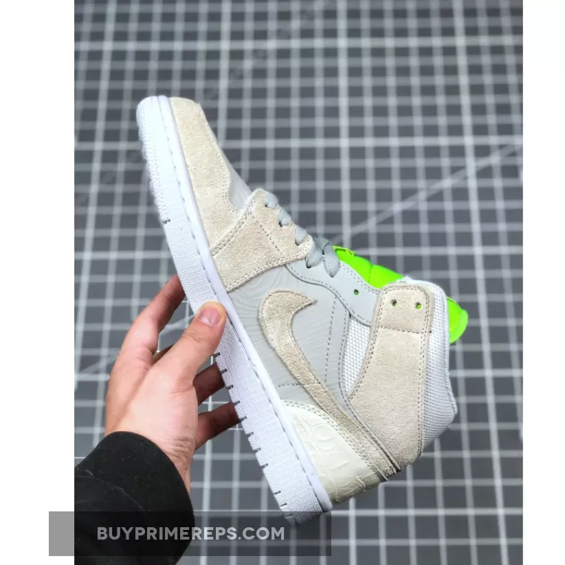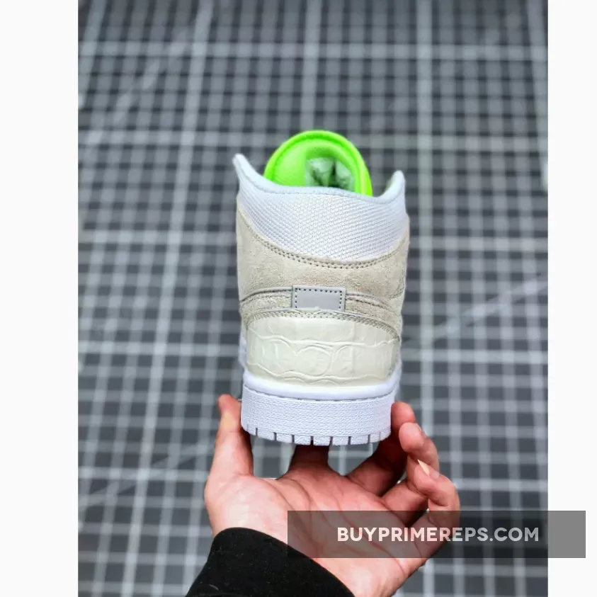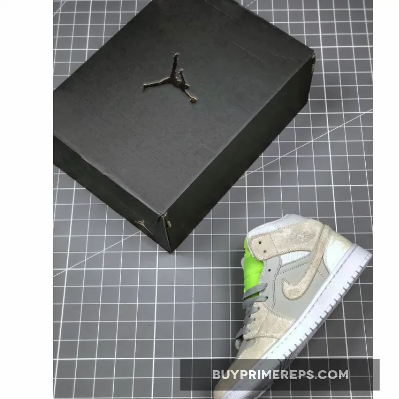 Underneath, the Air Jordan 1 Mid Grey Volt features a White rubber sole that not only complements the overall color scheme but also provides reliable traction and support on and off the court. This makes it a versatile sneaker that can be worn for both athletic activities and everyday casual wear.