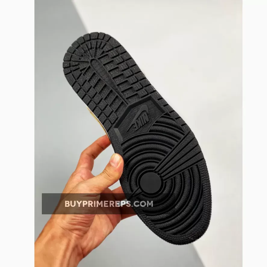 The Air Jordan 1 Mid GS White Gold is a versatile sneaker that can easily freshen up any sneaker rotation. The crisp white midsole and bold black outsole not only provide a clean contrast but also offer reliable traction for everyday wear. Whether paired with casual or sporty outfits, this sneaker is sure to turn heads and make a stylish statement.