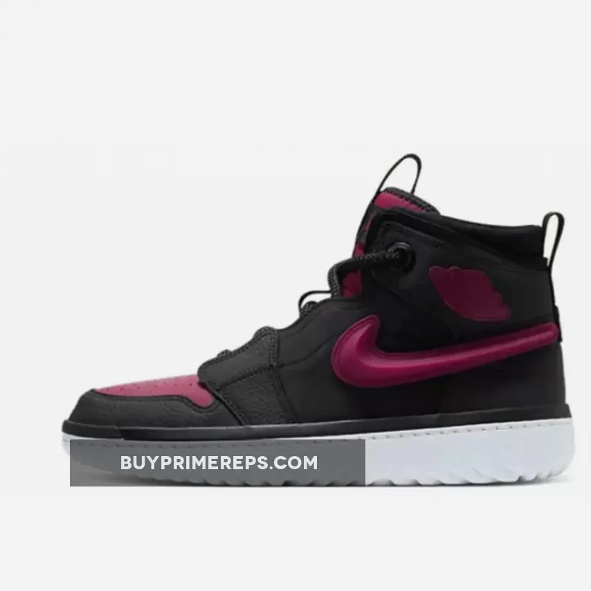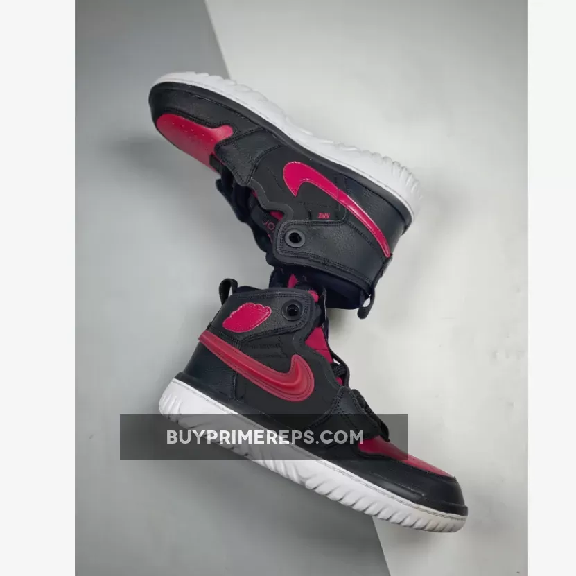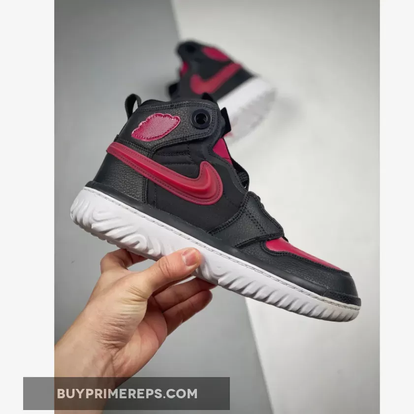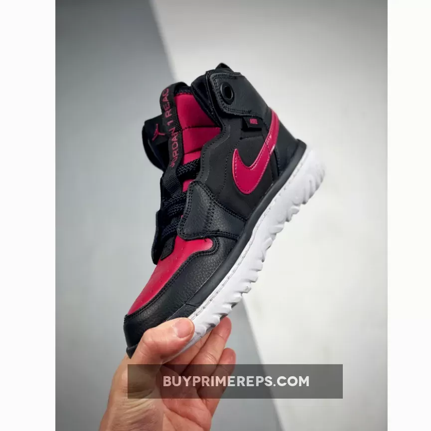The Air Jordan 1 React Black/White-Noble Red is a modern take on the iconic Air Jordan 1 silhouette. While it may not feature the usual zippers, buckles, and clasps typically associated with a utilitarian design, it still exudes a utilitarian appeal through its unique construction and innovative features.