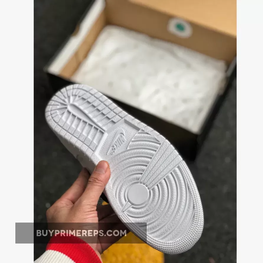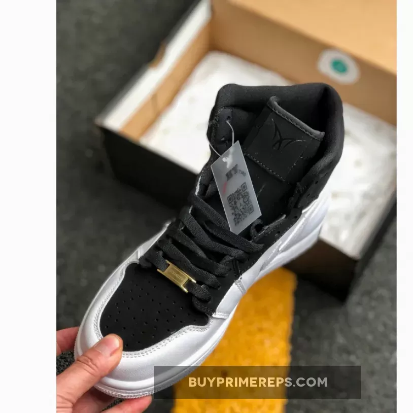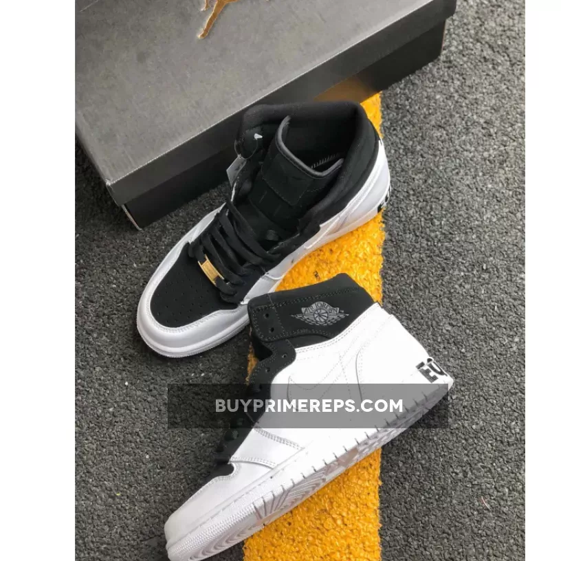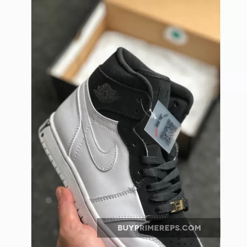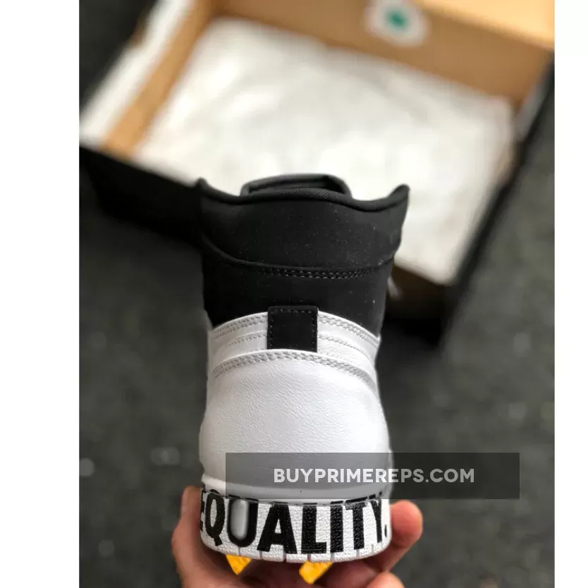 The upper of the Air Jordan 1 Retro High ‘Equality’ is crafted from premium leather, with a distinctive color-blocking theme that seamlessly blends black and white hues. The black color dominates the upper, while the lower part is adorned with clean white, creating a visually impactful contrast. The metallic gold accents on the lace dubrae add a touch of luxury and sophistication to the overall design.