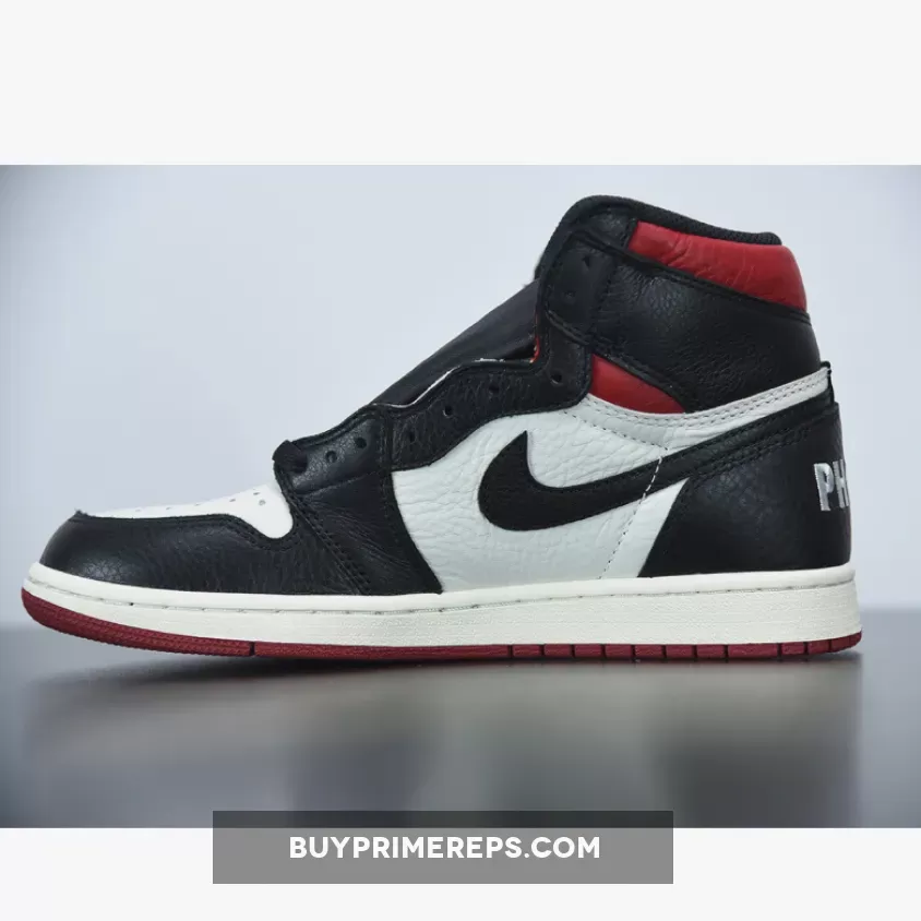 The Air Jordan 1 Retro High OG NRG “Not For Resale” comes in a striking colorway of Sail, Black, and Varsity Red. The upper is constructed with premium tumbled leather, giving the shoe a luxurious feel. The black overlays provide a bold contrast against the white leather base, while the pop of Varsity Red around the collar adds a vibrant touch.