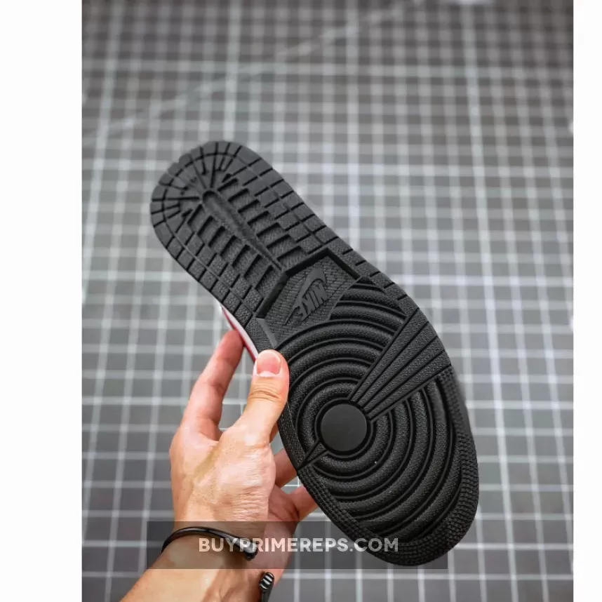 The gym-red overlays are outlined with black, giving the shoe a distinctive and unique design. The Nike Swoosh logo is present on both the lateral and medial sides, while Nike Air branding is showcased on the tongue. The wings logo is neatly embossed onto the collar, adding to the overall aesthetic appeal. Other classic details, such as the perforated toe box, remain intact, staying true to the original Air Jordan 1 design.