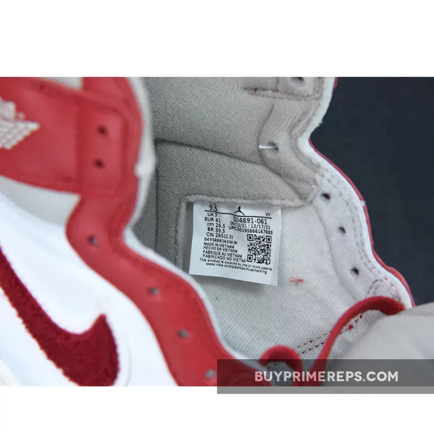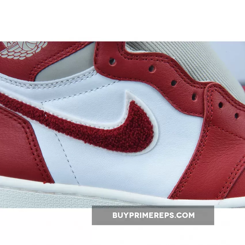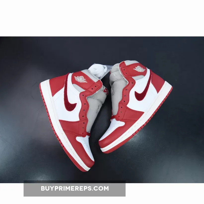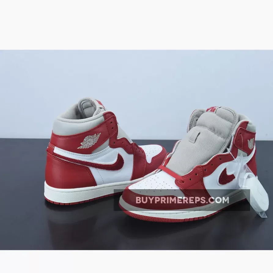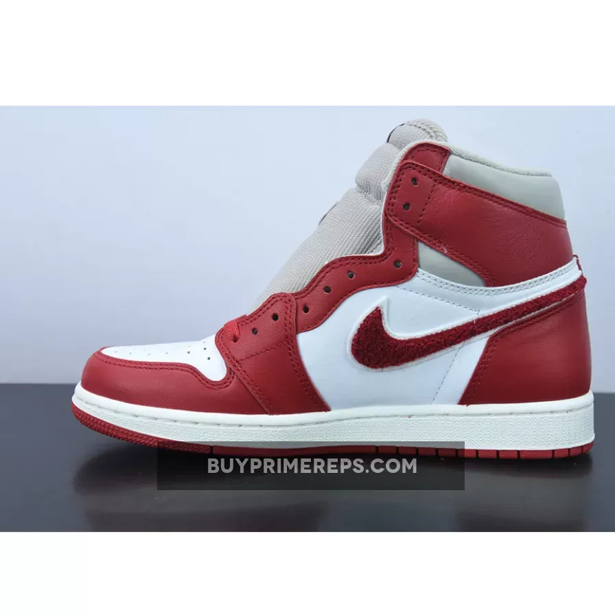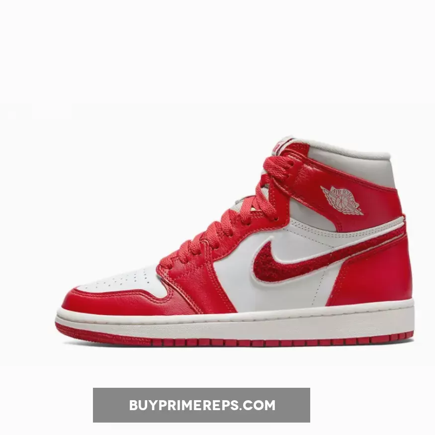 Crafted from premium leather, the upper of the Air Jordan 1 High OG “Newstalgia” stays true to the original design, with panels that showcase the vibrant red hue. The Nike Swoosh logo is prominently featured on both sides of the shoe, made from a chenille fabric that adds a unique texture. Red Nike Air branding can be found on the tongue tabs, giving the shoe an authentic touch.