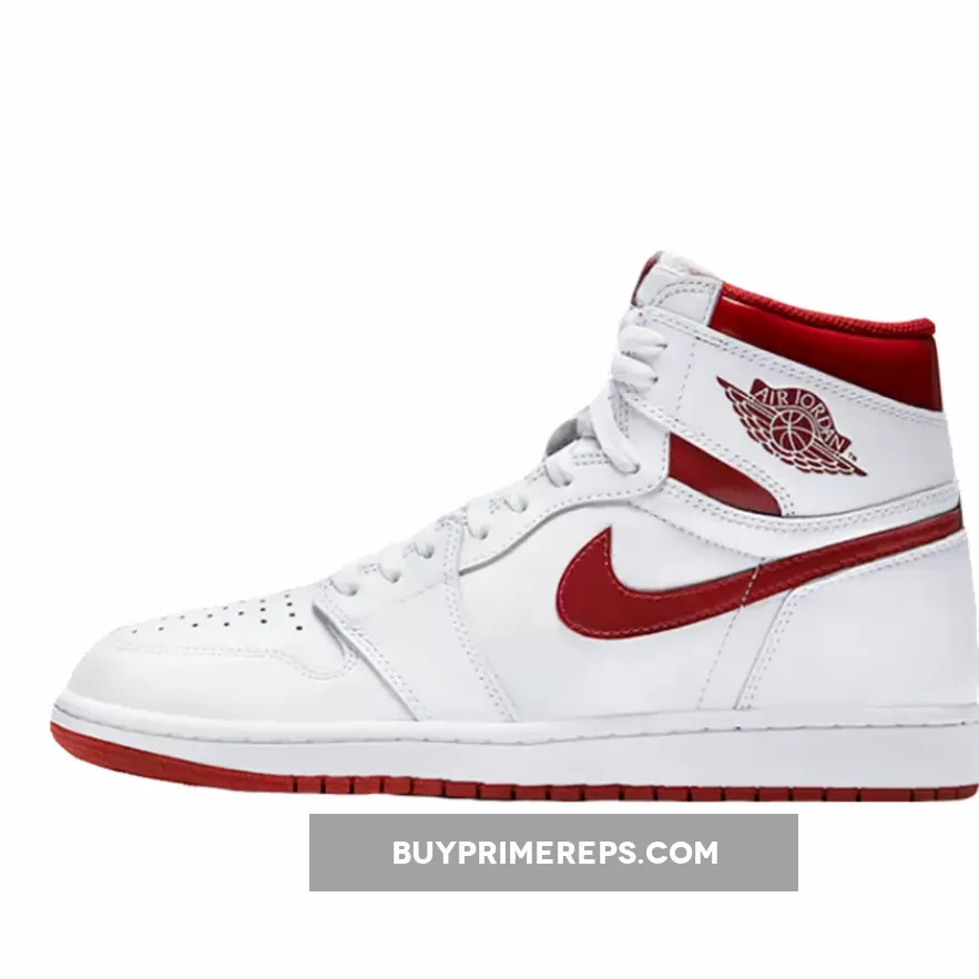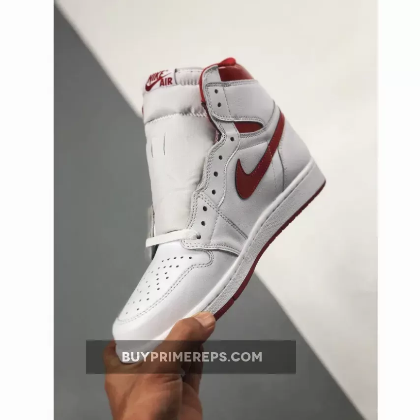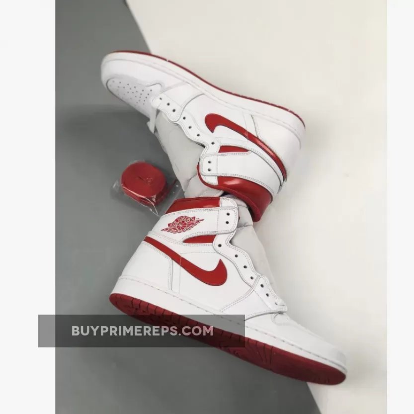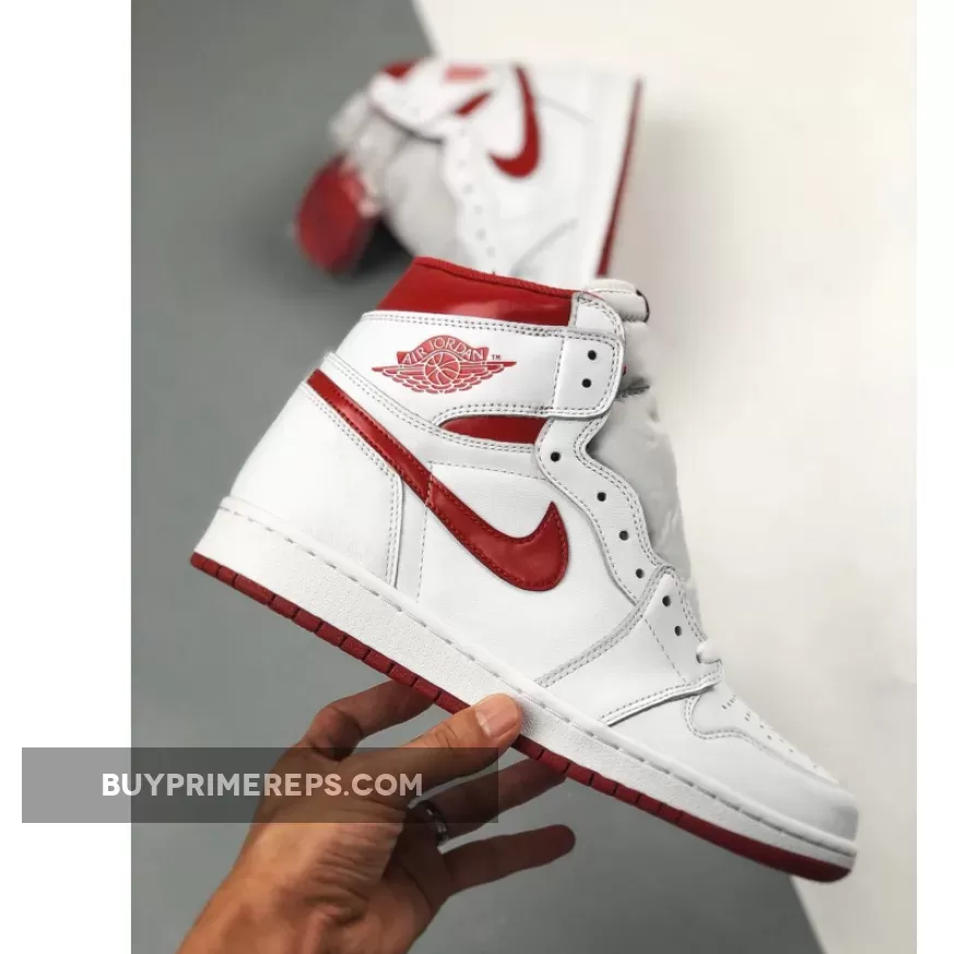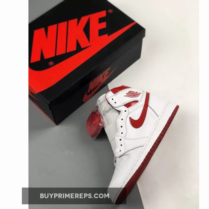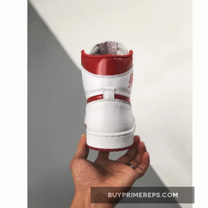 The Air Jordan 1 Retro High OG “Metallic Red” boasts a clean and classic look. The upper is constructed with premium white leather, which provides a sleek and timeless aesthetic. Varsity Red accents are strategically placed throughout the shoe, adding a bold and vibrant touch. One of the standout features of this release is the patent leather detailing on the ankle collar and Swoosh. The patent leather has a metallic finish, giving the shoe a luxurious and eye-catching appeal.
