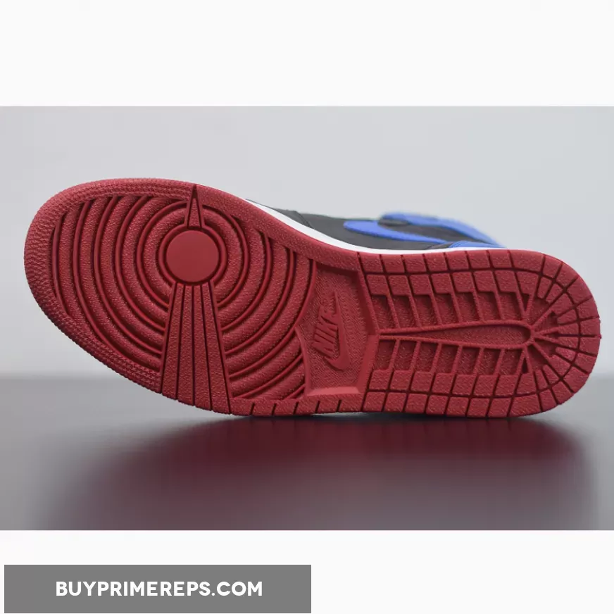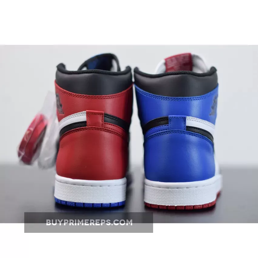 The ‘Top 3’ features a unique design with mismatched color panels and outsoles. The left shoe sports a combination of the classic ‘Bred/Banned’ colorway, featuring black and red panels, while the right shoe combines the ‘Chicago’ colorway, with white, black, and red panels. The blue panel on the tongue adds a vibrant touch to the overall design, making it stand out even more.