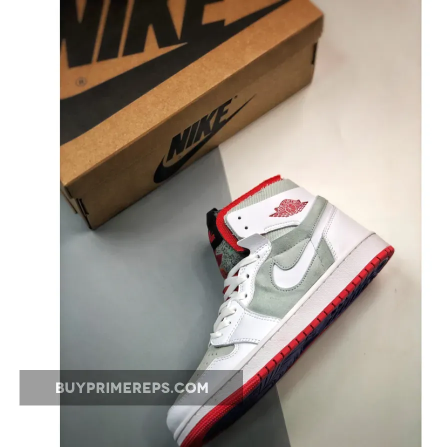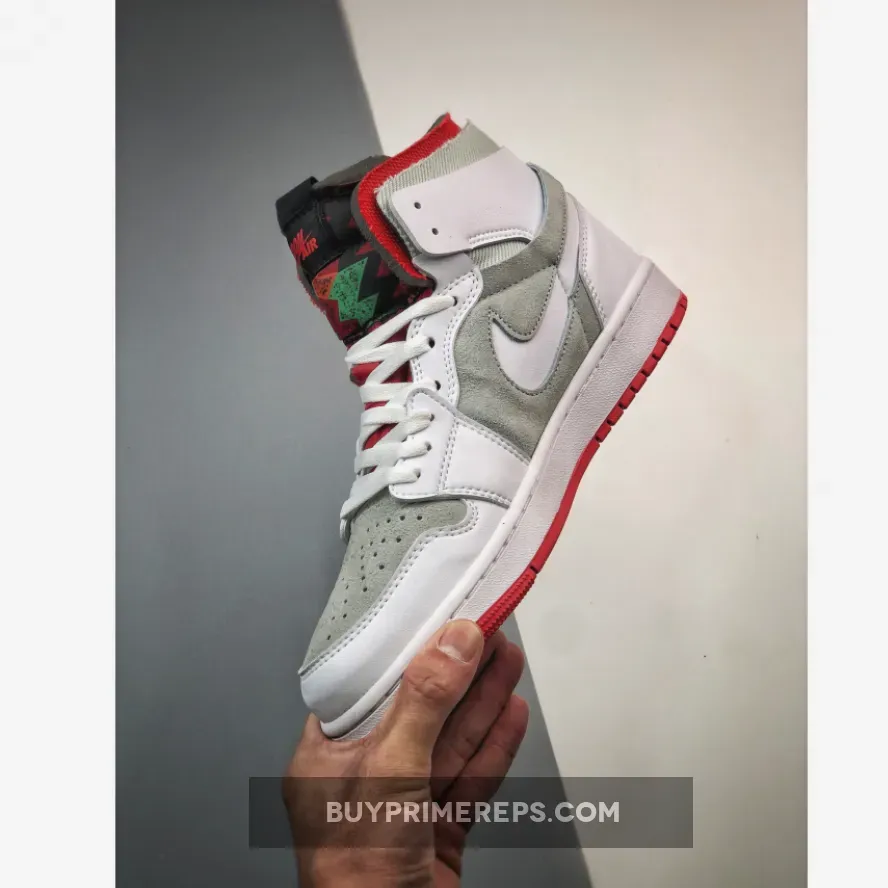 The Air Jordan 1 Zoom CMFT “Hare” features a high-top profile with cushion-padded collars, providing a level of comfort not typically found in traditional Jordan 1s. The design draws inspiration from the OG Air Jordan 7 “Hare” colorway, incorporating a mix of white and grey hues with vibrant orange accents. The use of cut-out Nike Swoosh logos on the lateral and medial sides sets this pair apart from other Jordan 1 models, while the classic Wings insignia on the ankle flaps maintains a timeless aesthetic.