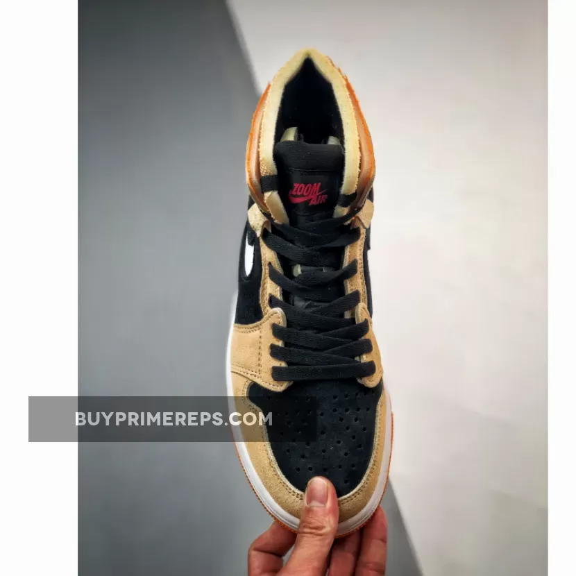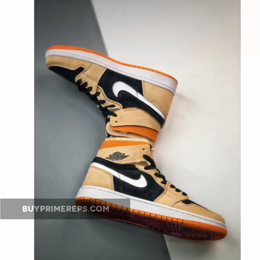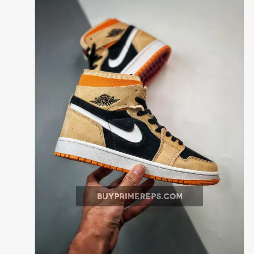 The Air Jordan 1 Zoom CMFT “Pumpkin Spice” is not just about its eye-catching colorway. It also offers comfort and performance, thanks to the Zoom technology incorporated in the midsole. The white midsoles provide cushioning and support, while the bold orange outsole adds a touch of flair.