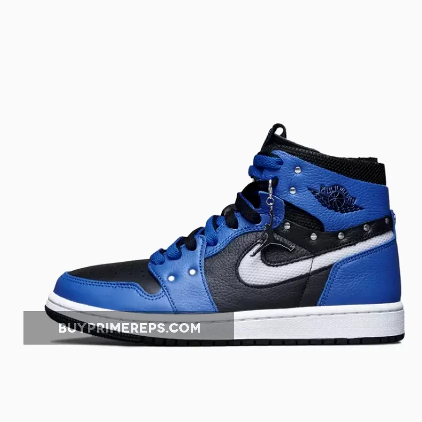 Dressed in a Hyper Royal, Black, and White color combination, this Air Jordan 1 Zoom Comfort is visually striking. The upper is constructed with premium black leather, providing durability and a sleek look. The overlays, in a vibrant Hyper Royal blue, add a pop of color and contrast to the design.