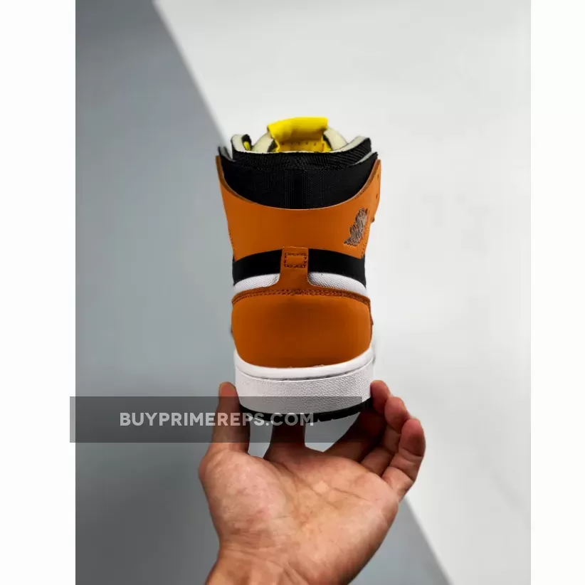 One of the standout features of this Air Jordan 1 is the use of monarch, a shade of wheat, on the overlays. This warm and earthy tone adds depth and dimension to the sneaker, creating a visually striking look. To further enhance the design, yellow accents are present on the tongue tab, adding a pop of color that complements the overall color scheme.