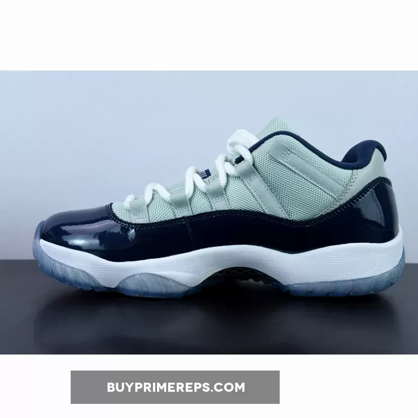 Inspired by the epic battles between North Carolina and Georgetown, the “Georgetown” 11 Low celebrates the moment Michael Jordan sealed his legendary status with a buzzer-beating shot against the Hoyas. 🏀 The shoe features a premium combination of materials, including breathable Grey mesh and luxurious Midnight Navy patent leather overlays. 🤩