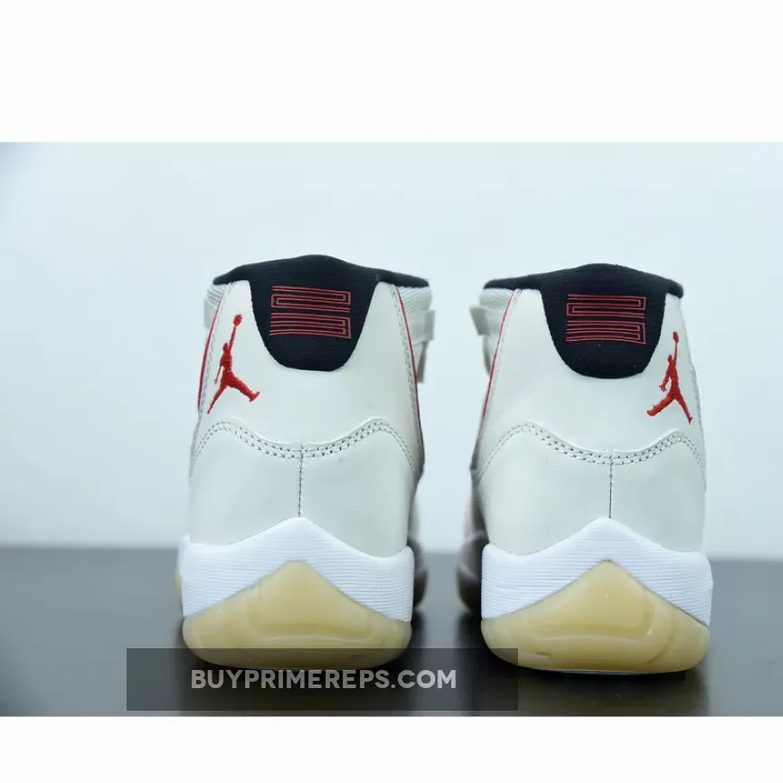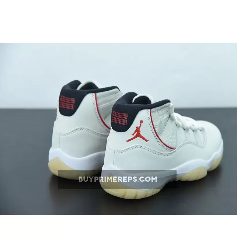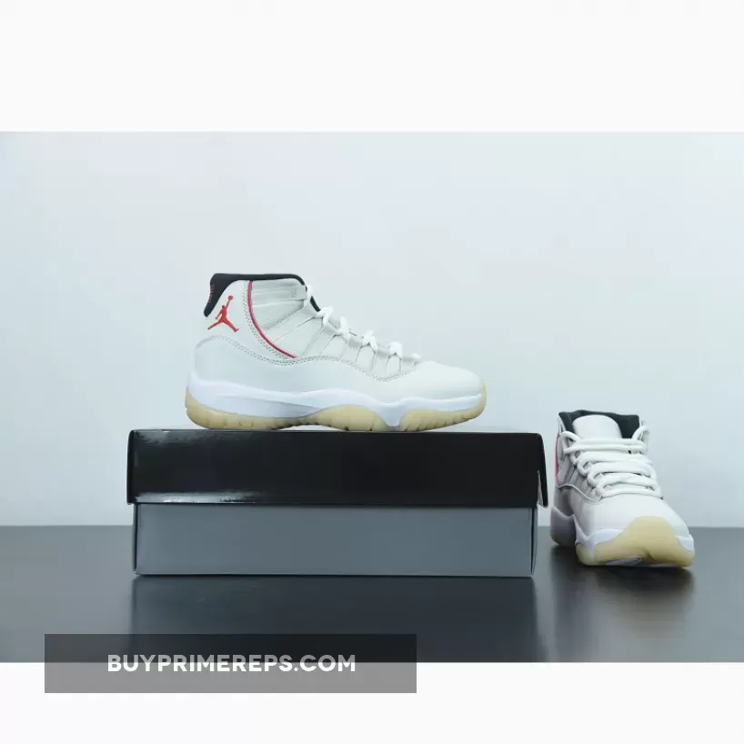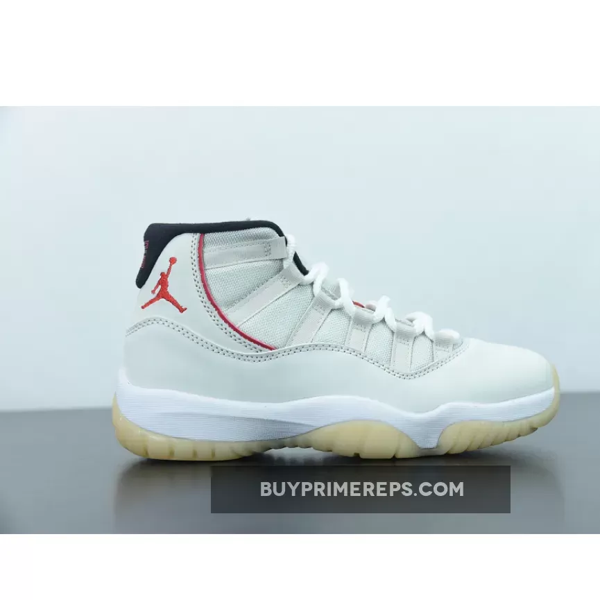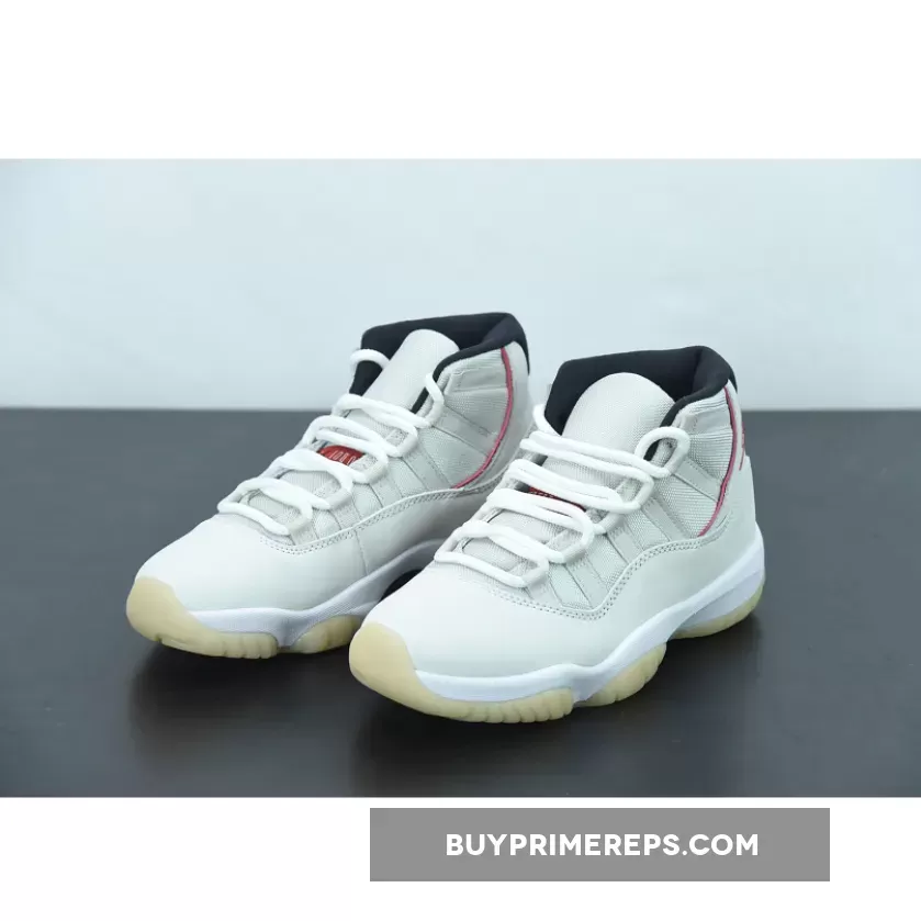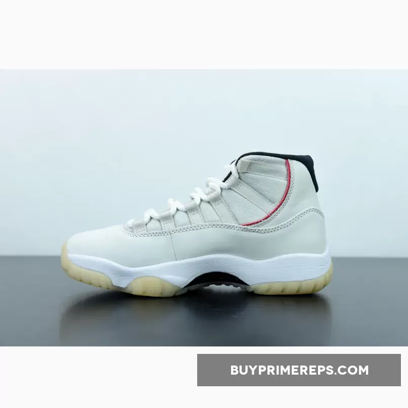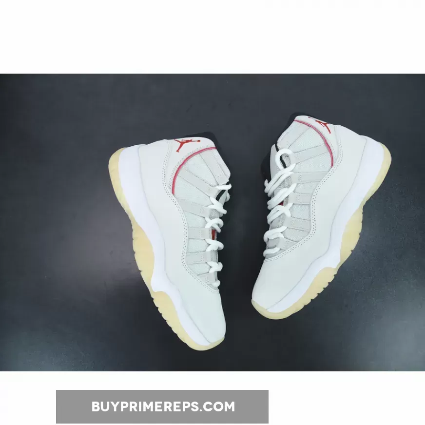 Dressed in a Platinum Tint, Sail, and University Red color combination, this Air Jordan 11 takes a more subtle approach compared to other bold colorways. The upper is constructed with a Sail mesh material, providing breathability and comfort. The patent leather overlay, which is a signature element of the Jordan 11, is given a Platinum Tint finish, adding a touch of sophistication to the overall design.