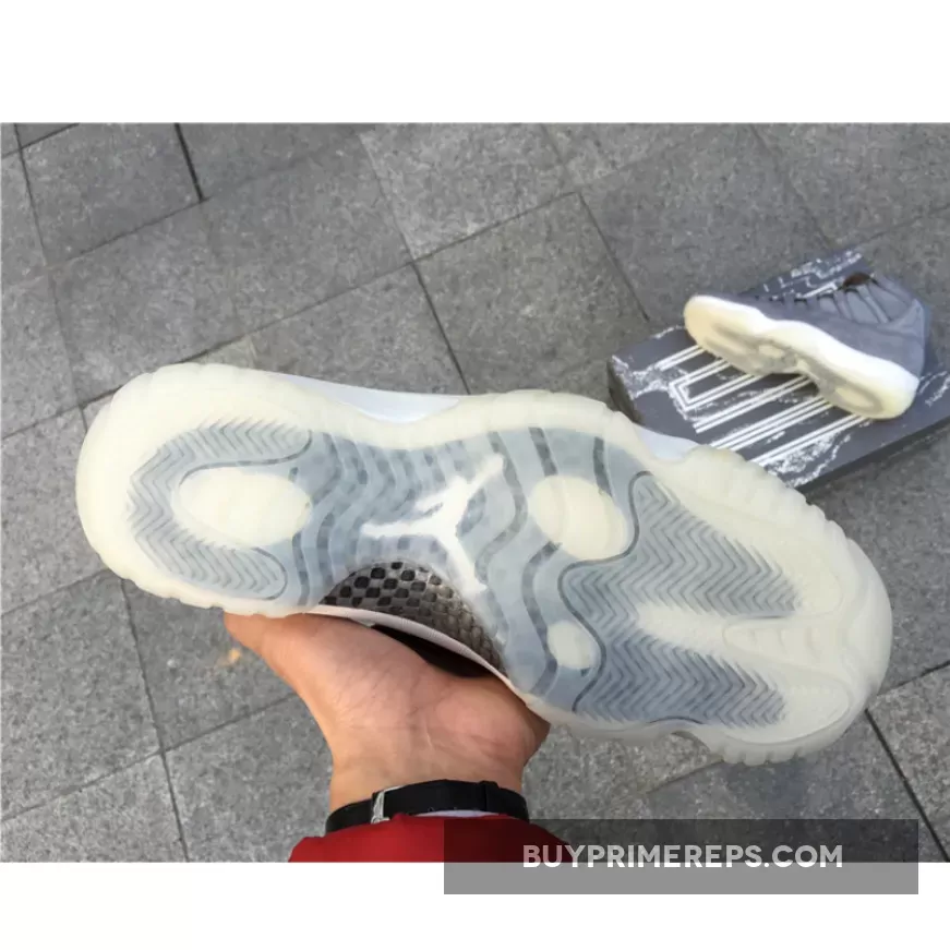 One of the standout features of the Air Jordan 11 Retro Premium ‘Grey Suede’ is the split-colored midsole. The midsole combines white and cream tones, creating a striking contrast against the grey upper. This unique design element adds an extra layer of visual interest to the shoe, making it a standout in any sneaker collection.
