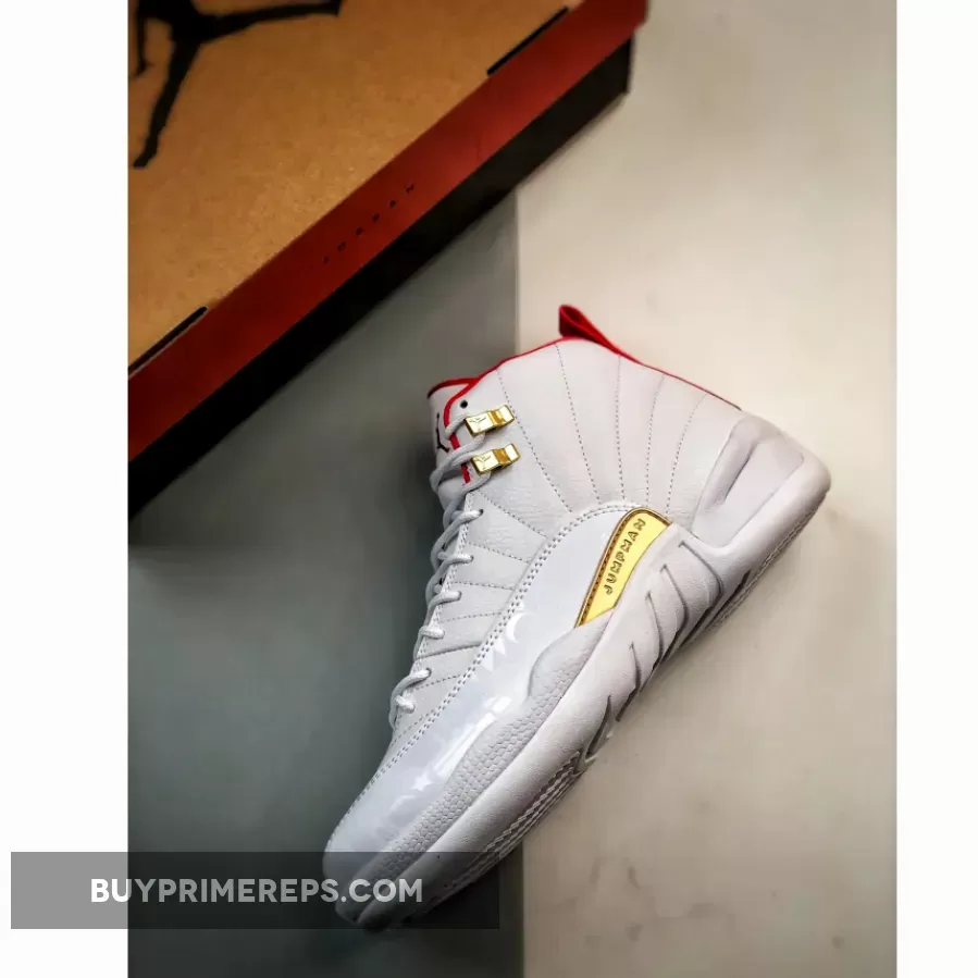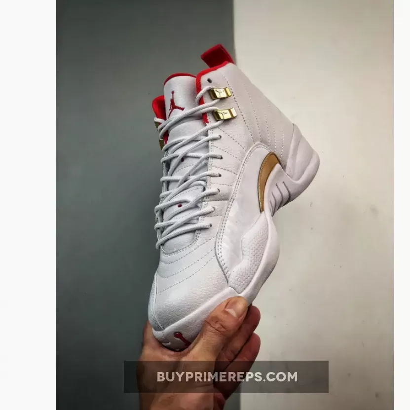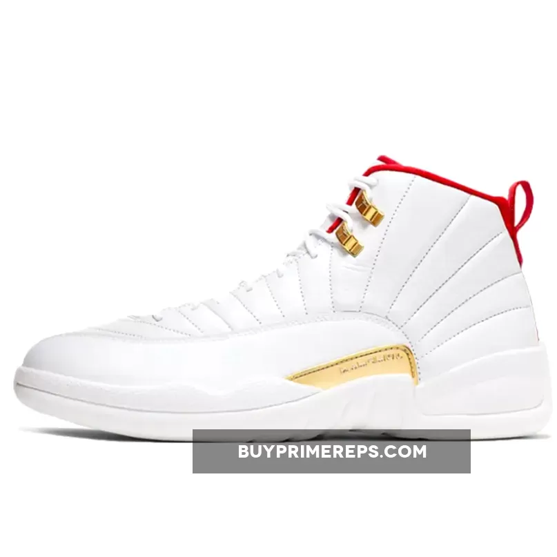 The design of the Air Jordan 12 Retro “FIBA” is truly eye-catching. It features a clean white leather upper, which is complemented by hits of University Red along the ankle collar, branding, and Jumpman logo on the outsole. These red accents add a touch of vibrancy to the overall aesthetic of the shoe. But what really sets this release apart is the metallic gold detailing. The midsole and eyelets are adorned with a metallic gold Jumpman plate, adding a luxurious and sophisticated element to the design.
