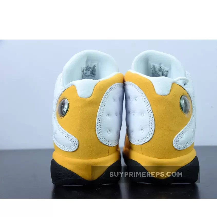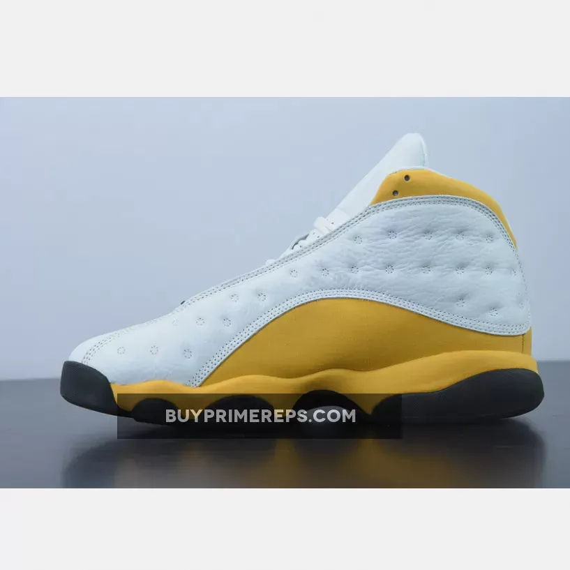 The Air Jordan 13 “Del Sol” features a simple yet eye-catching colorway that is perfect for the upcoming spring season. The shoe showcases a pristine white leather upper, which extends to the iconic quilted overlay. This clean canvas is then accentuated by pops of creamy butter yellow, which can be seen on the sculpted mudguard, midsole, heel, and ankle. These subtle touches of color add a vibrant and playful element to the overall design.