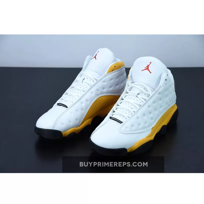 Got my hands on the Air Jordan 13 Del Sol 👟😍. Love the clean white base with pops of yellow and red. Super comfy and stylish. Shipping was pretty fast too! #AJ13 #DelSol #Sneakers 📦✨