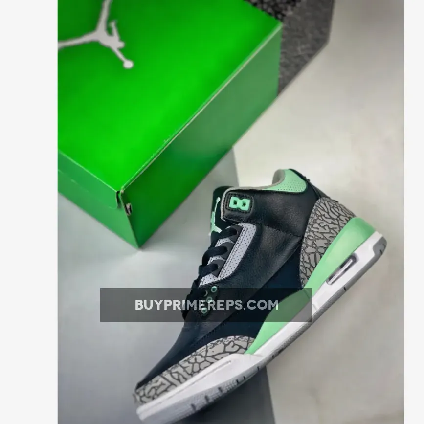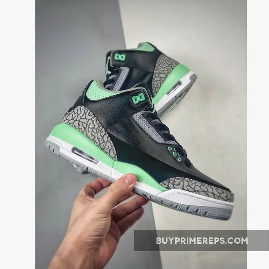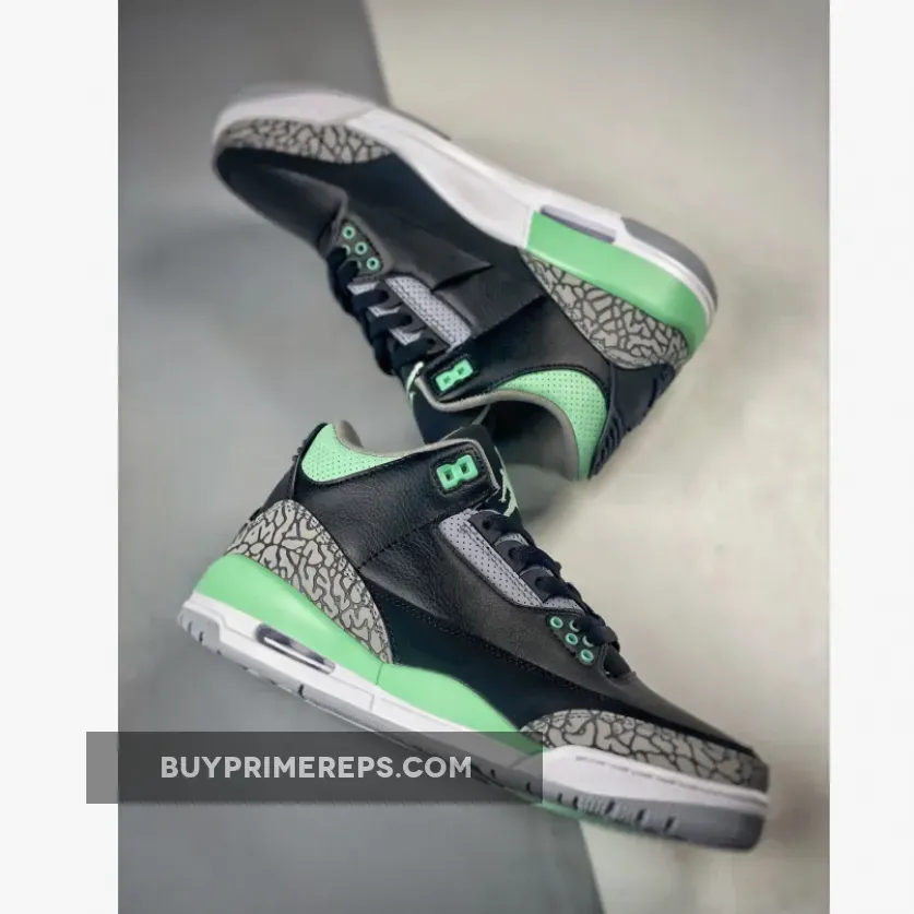 Overall, the Air Jordan 3 Black/Green Glow-Wolf Grey-White CT8532-031 is a must-have for sneaker enthusiasts and Jordan fans alike. Its combination of classic design elements, vibrant color accents, and superior comfort make it a standout choice. With its timeless appeal and eye-catching details, this pair is sure to turn heads wherever you go.