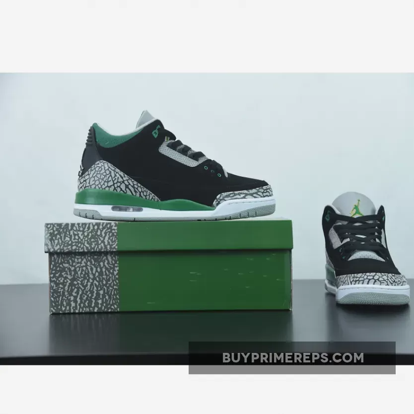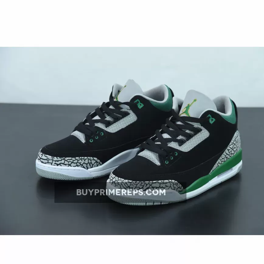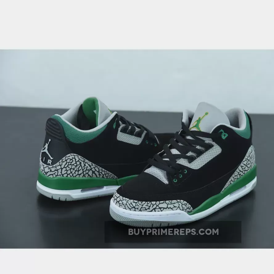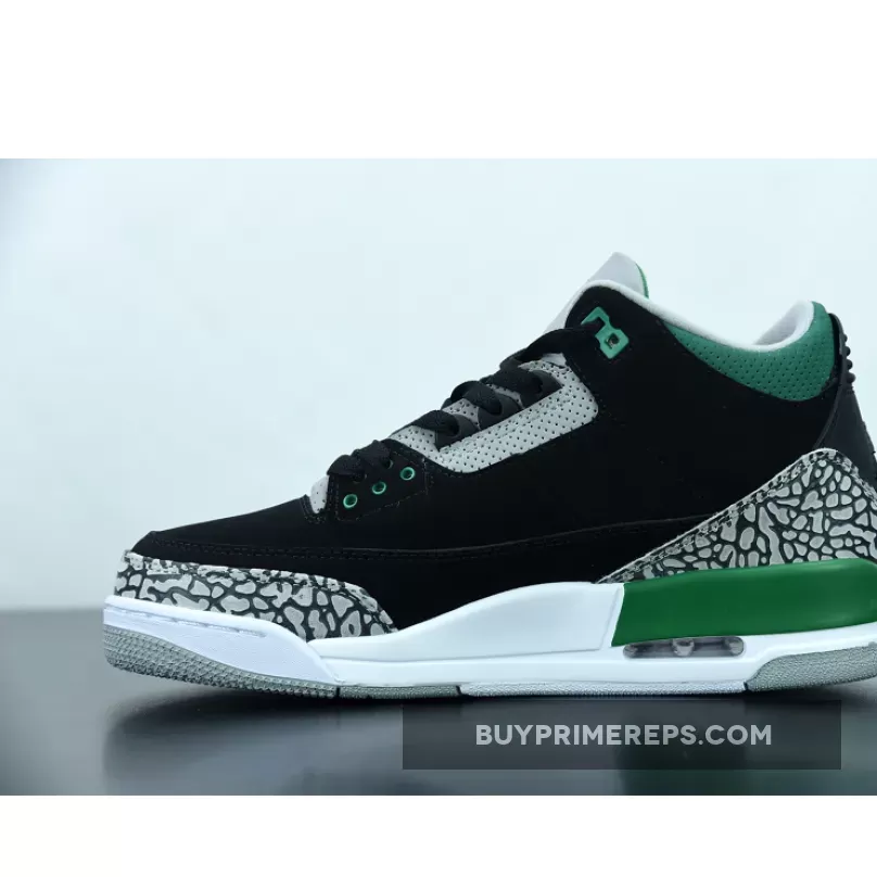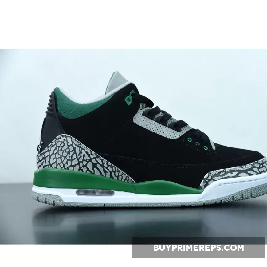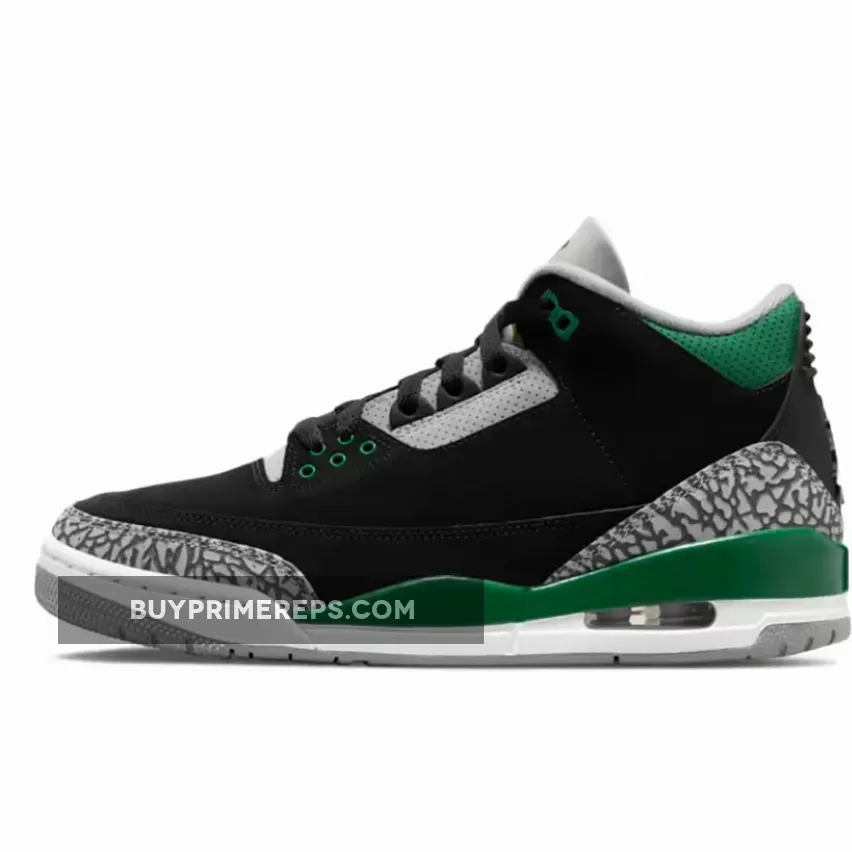 Inspired by the original Air Jordan 3 design, this rendition retains the beloved silhouette and heritage elements. Premium materials and expert craftsmanship ensure comfort and durability. The vibrant Pine Green accents throughout the shoe brighten up the overall design, making it a bold and stylish statement piece.