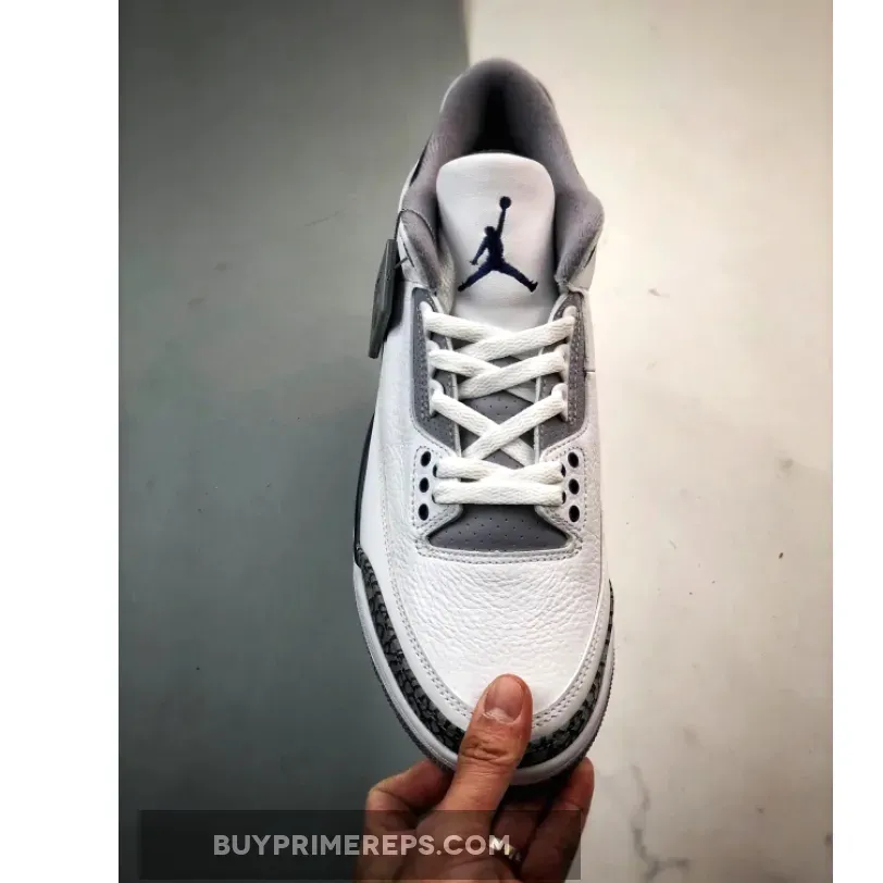 The shoe boasts a primarily white leather upper, exuding a clean and timeless aesthetic. The use of premium materials and expert craftsmanship is evident, as the white leather is complemented by the iconic elephant print detailing on the toe, heel, and eyestays. This signature feature adds depth and texture to the design, while paying homage to the original Air Jordan 3’s distinctive style.