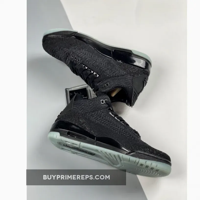 In addition to the innovative upper, the Air Jordan 3 Flyknit Black features premium details such as a leather interior and waxed laces, adding to the luxurious aesthetic of the shoe. The glossy black midsole provides a striking contrast to the dark upper, while the glow-in-the-dark outsoles add a unique and eye-catching element to the design.