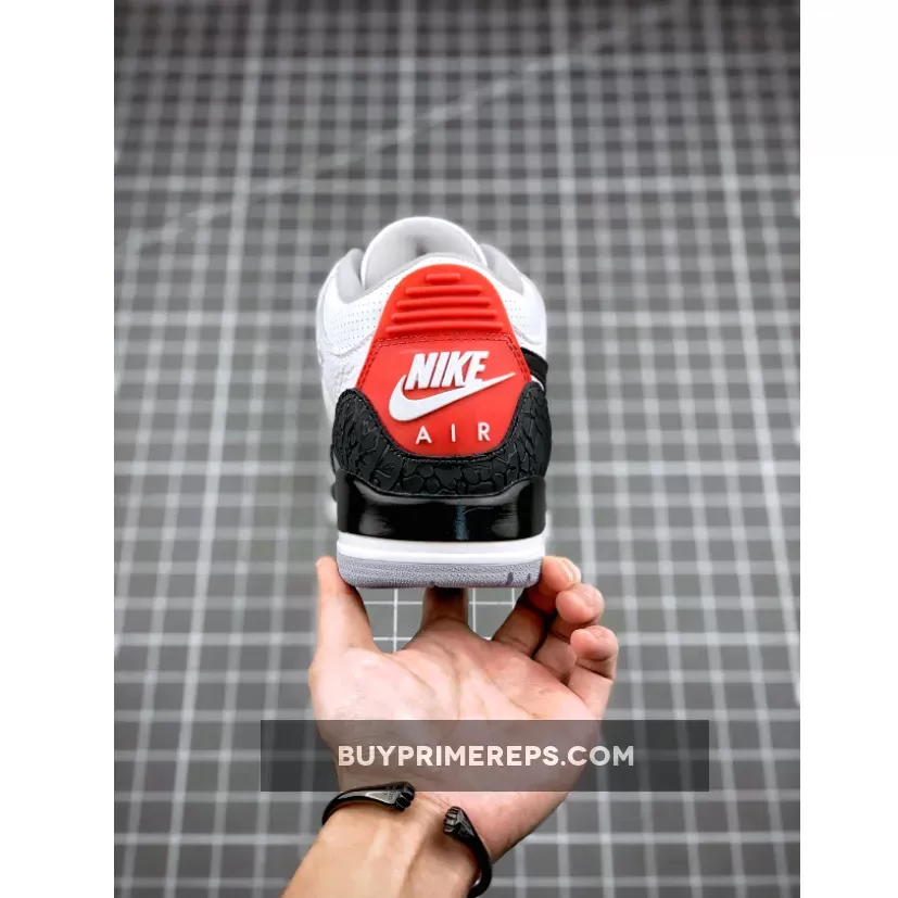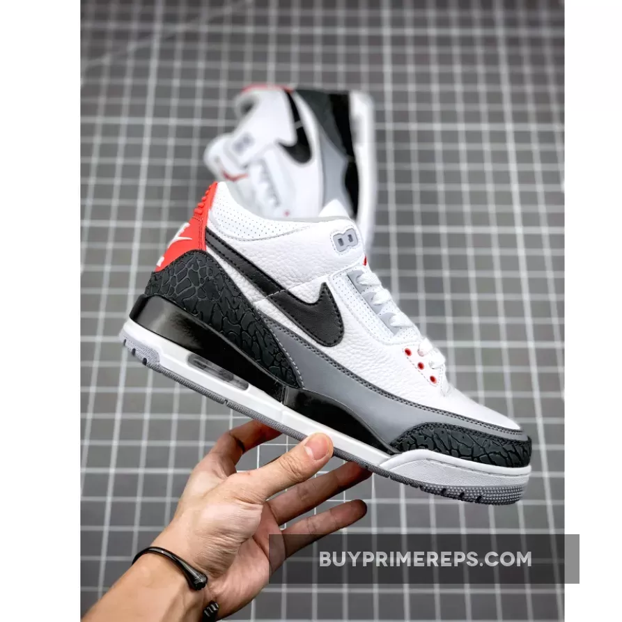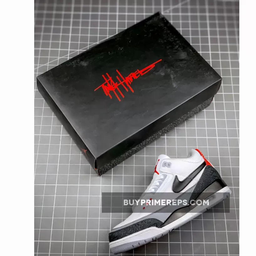 The colorway of the Air Jordan 3 “Tinker” NRG is a slightly altered version of the classic “Fire Red” scheme. It features a white and black midsole and light grey mudguards, creating a clean and stylish look. The shoe also features Tinker Hatfield’s signature, which is stitched on the inside of the tongue, as well as on the box top and hang tag. This adds a personal touch from the designer himself.