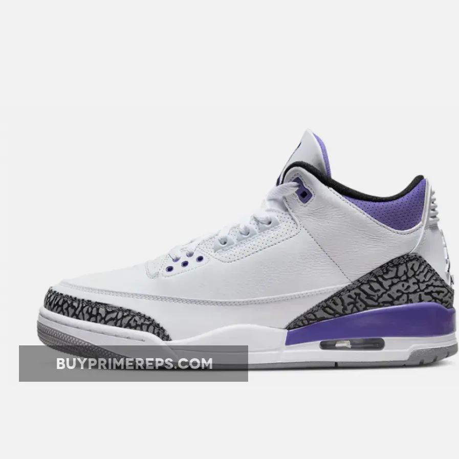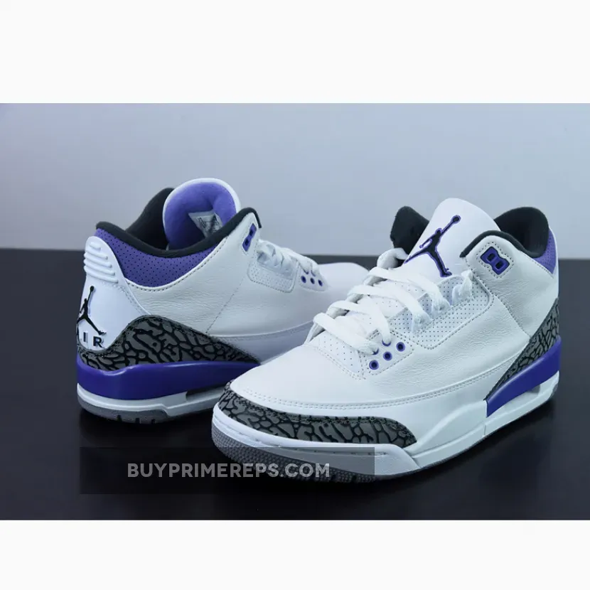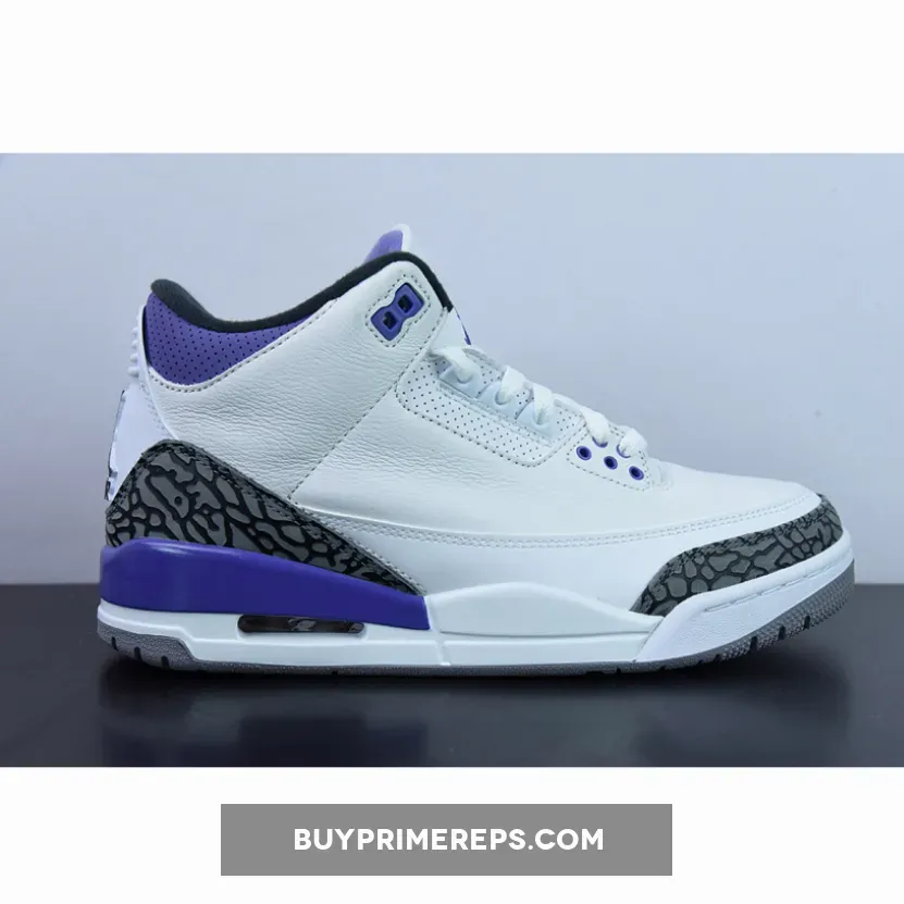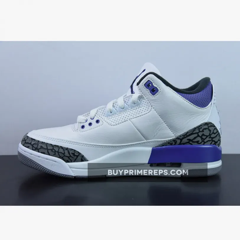 Introducing the Air Jordan 3 Dark Iris, a sneaker that blends classic design elements with a bold and vibrant colorway. This latest iteration of the iconic Air Jordan 3 silhouette is set to make waves with its unique combination of white, black, dark iris, and cement grey hues.
