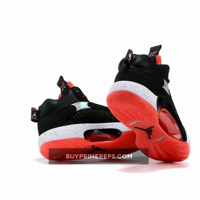 But it’s not just about looks – the Air Jordan 35 Bred is built to perform! The heel pull tab features Nike Air branding, paying homage to the iconic brand, and the netting on the panels adds a sporty element to the design. The white midsole with speckled detailing provides optimal comfort and support, making this shoe perfect for high-flying dunks or laid-back lounging.