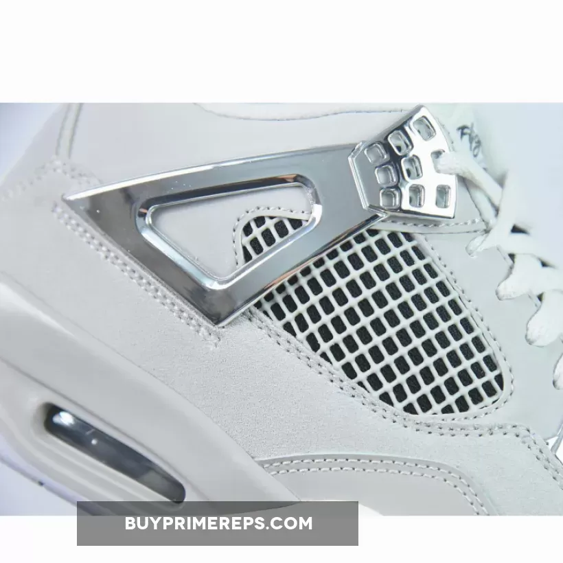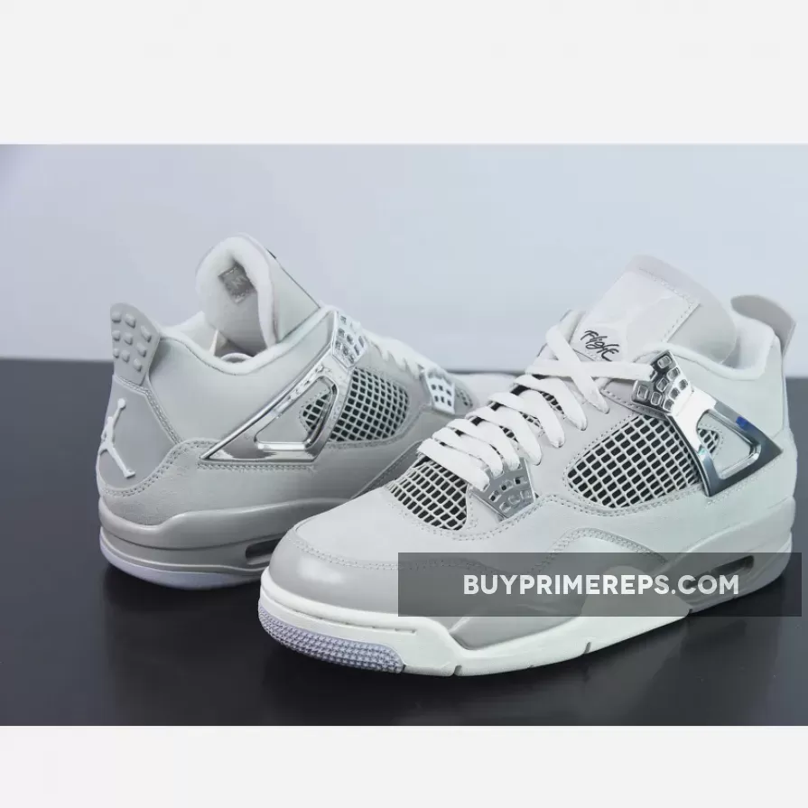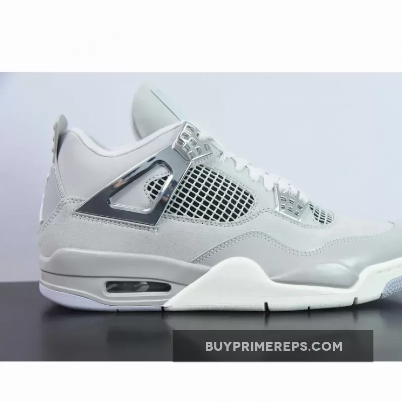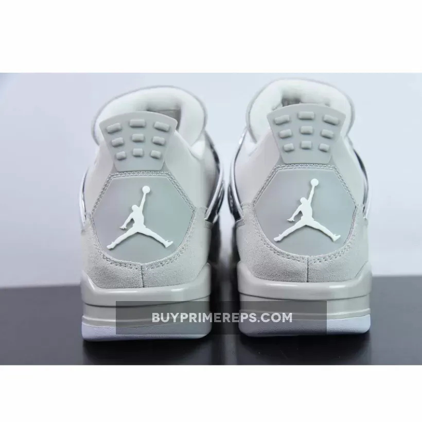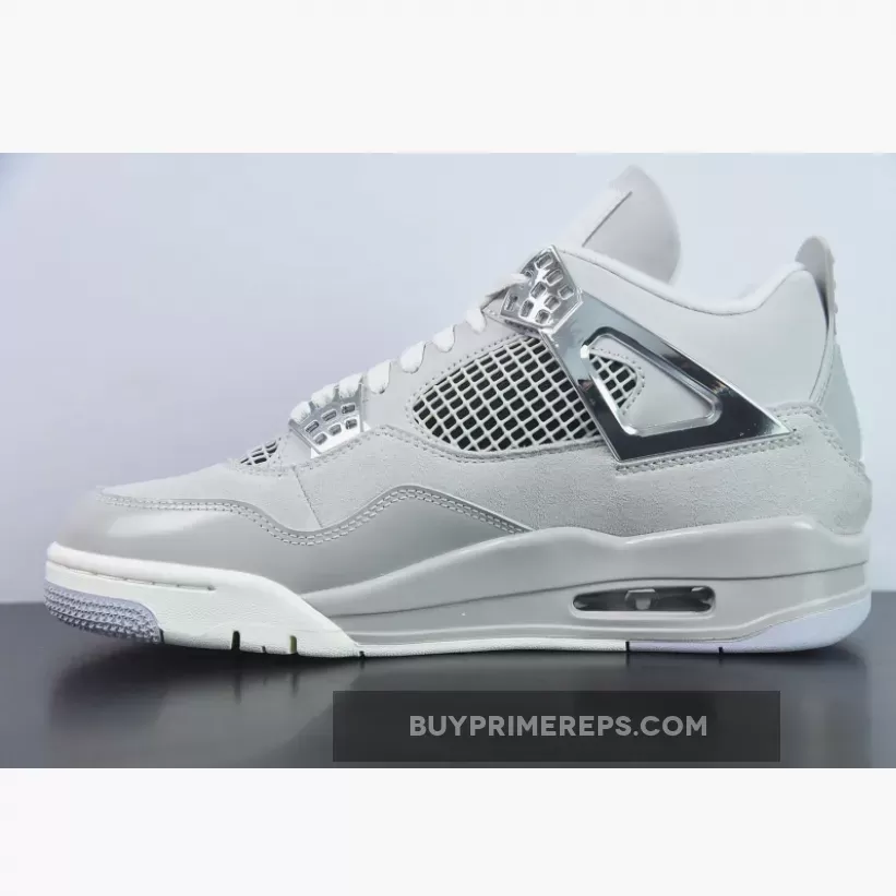 The Air Jordan 4 “Frozen Moments” features an all-gray upper constructed from premium leather and nubuck, with patent leather on the mudguard, nubuck on the midfoot panel and toebox, and smooth leather on the top portion. The shoe’s sleek design is complemented by metallic silver accents on the wing eyelets, netting, heel tab, tongue logo, midsole, and outsole.
