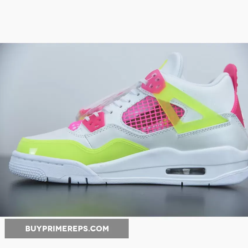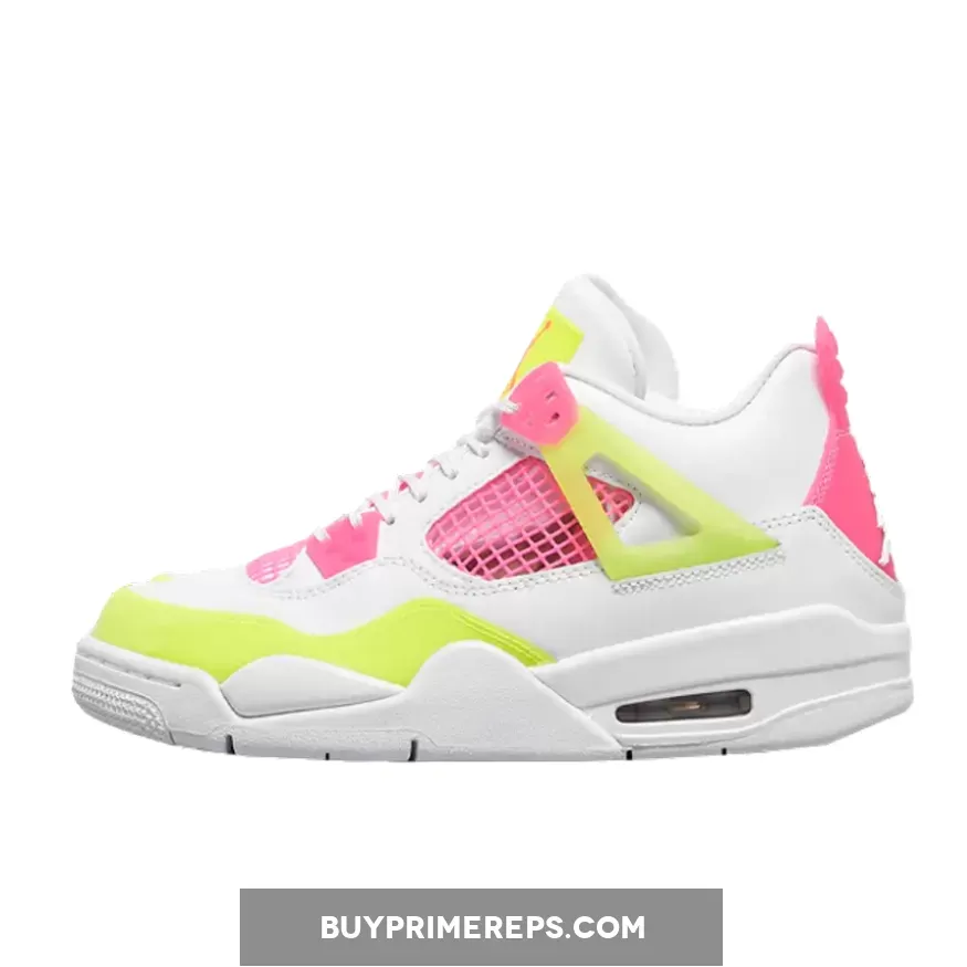 “Got my hands on the GS Lemon Venom AJ4 and I’m loving it! The White/Pink/Lemon color combo is fire. The bubblegum pink netting on the throat and mid-panel adds a nice touch. Wear them to the gym or just chillin’, they’re comfortable AF. Only downside is sizing runs small, but still a solid purchase!”