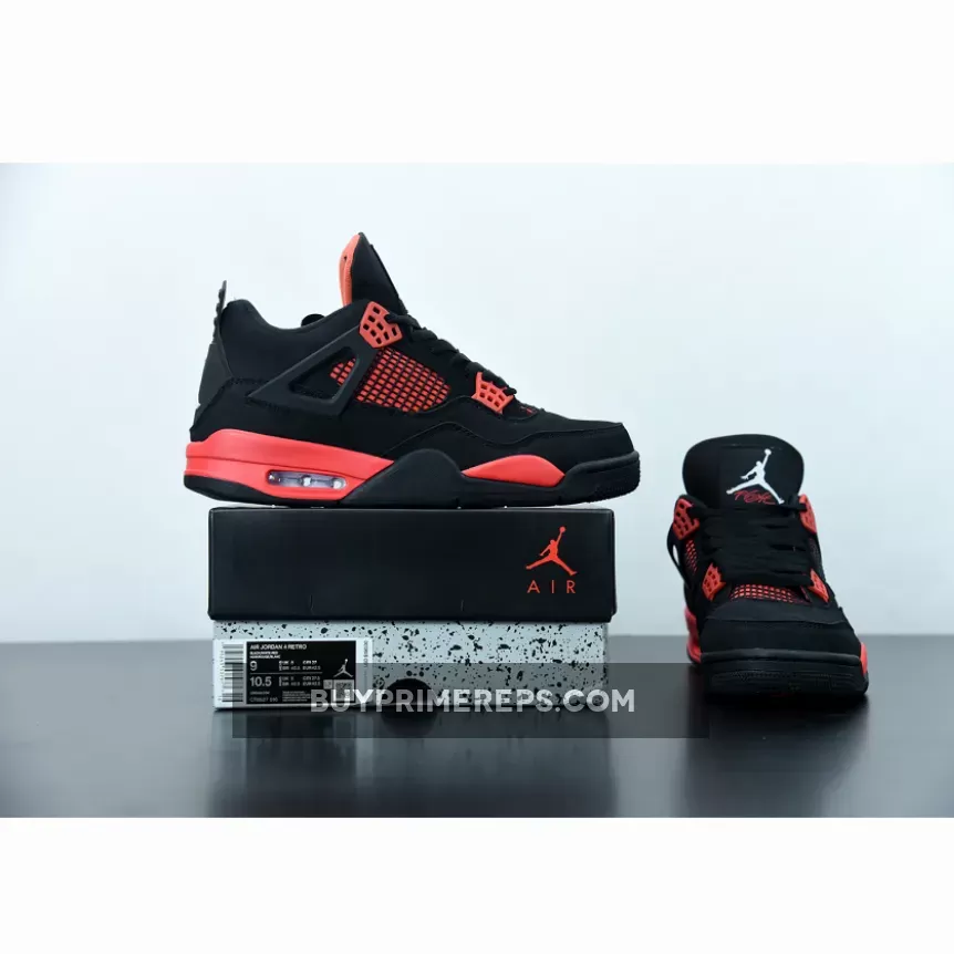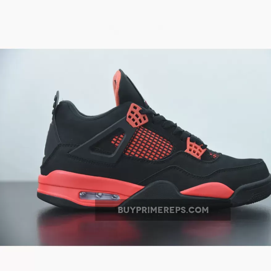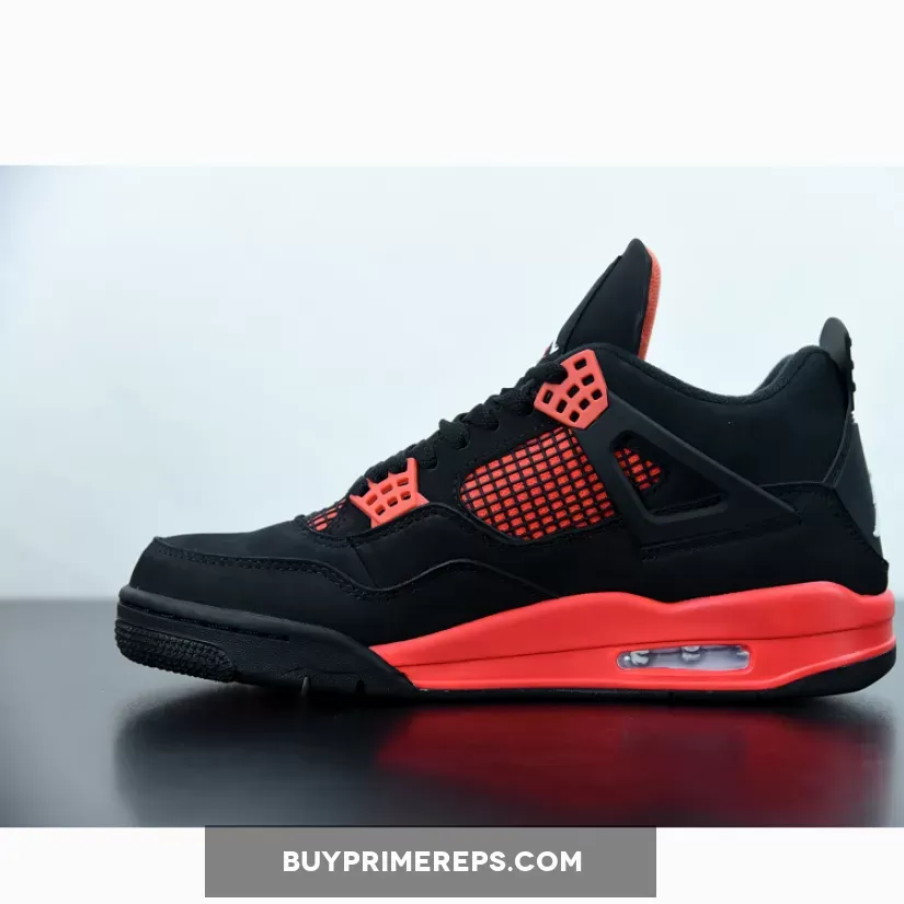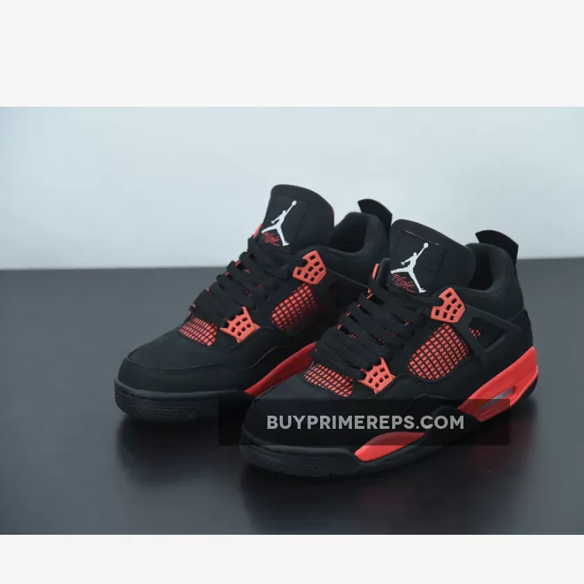 One of the standout features of the Air Jordan 4 Red Thunder is the use of contrasting colors. The black upper is beautifully complemented by the bold red accents that wrap around specific sections of the lacing system and the midsole. This color blocking technique not only adds visual interest but also pays homage to the original Thunder colorway.