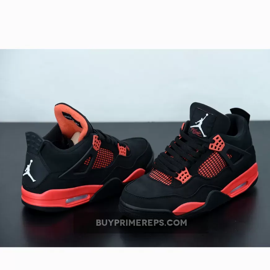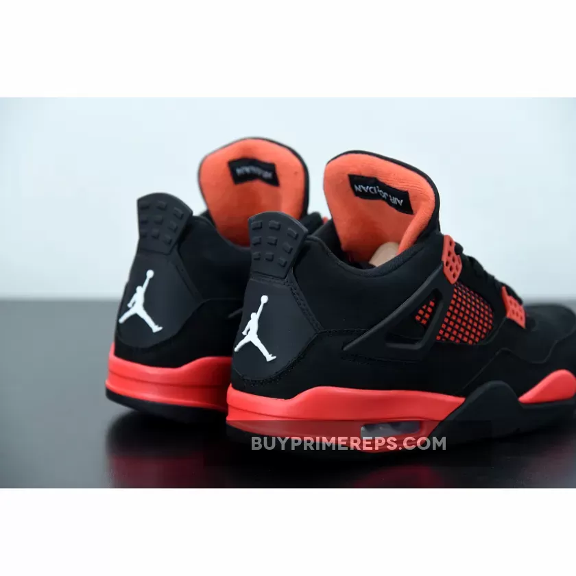 The Air Jordan 4 Red Thunder stays true to its heritage with the inclusion of the iconic mesh netting on the sidewalls. This not only adds a unique textural element but also allows for breathability, making it a comfortable choice for both on and off the court. The Jumpman branding can be found on the tongue, insoles, and rubber heel badge, reminding wearers of the shoe’s iconic status.