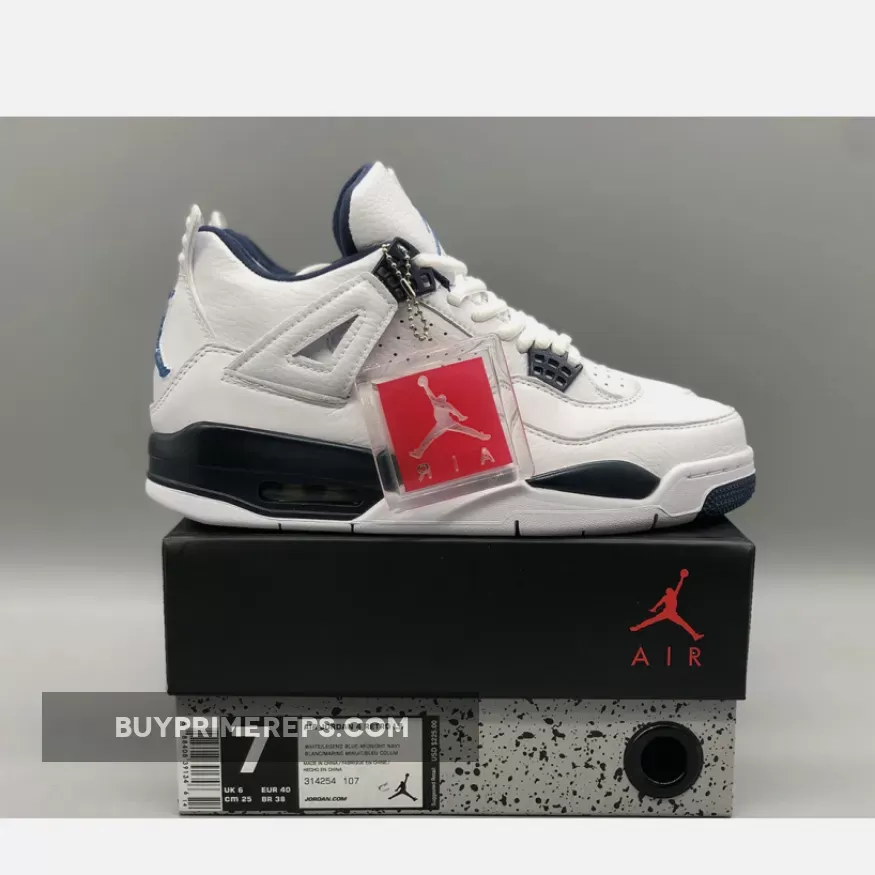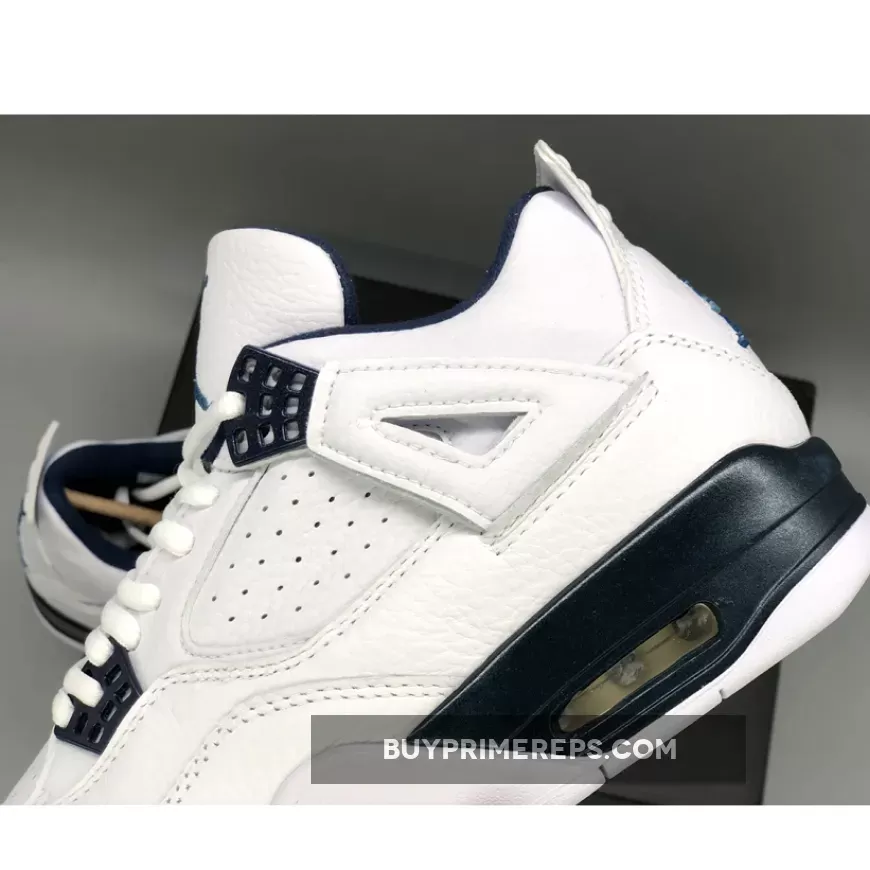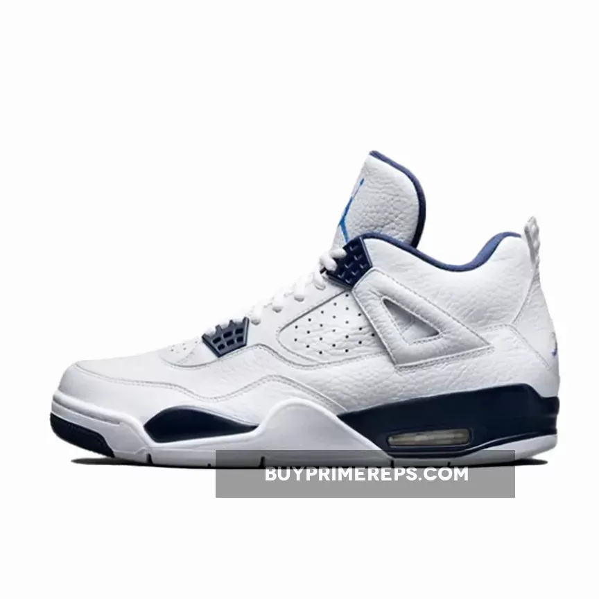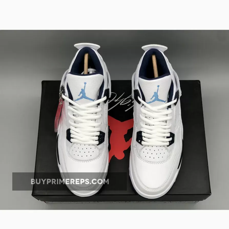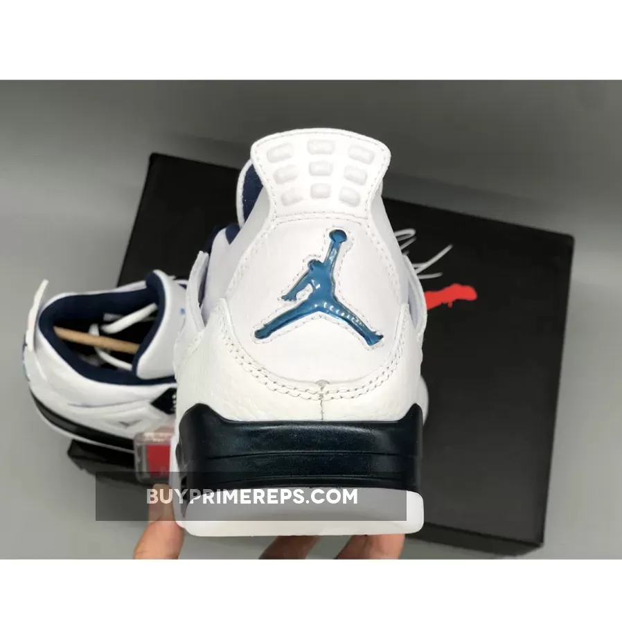 The colorway of the Air Jordan 4 Columbia is a mix of Legend Blue and Midnight Navy. Legend Blue replaces the original Columbia color, but the nickname seems to have stuck this time around. The dark navy hits on the midsole, outsole, and lining complement the white upper perfectly, creating a stylish and balanced look.