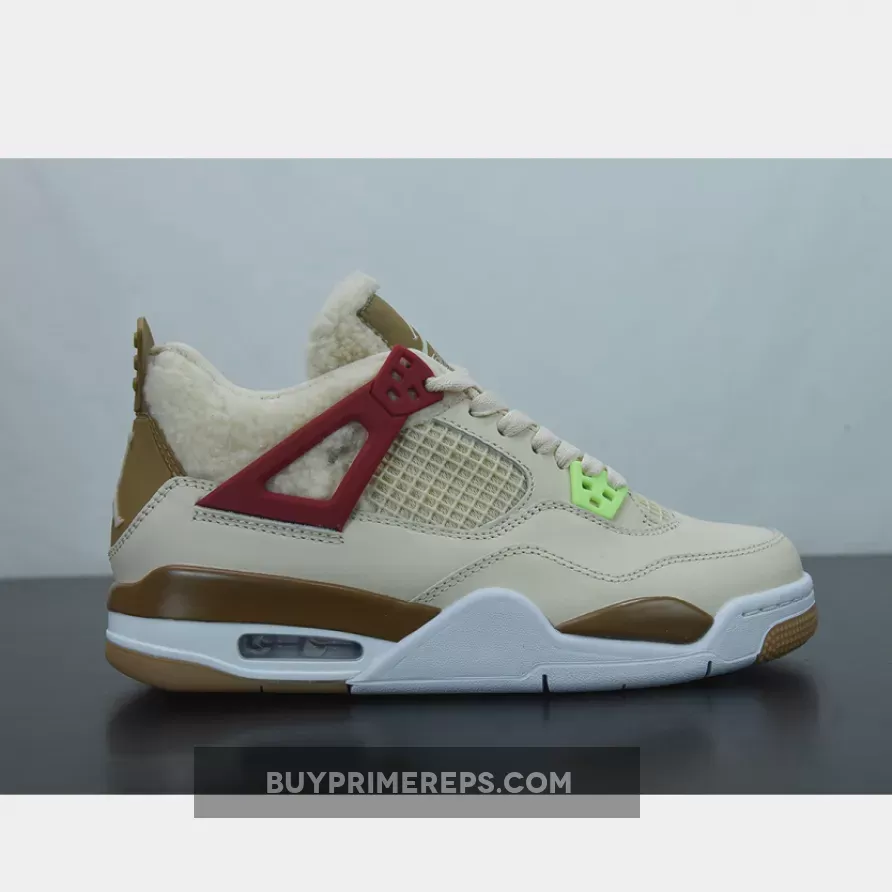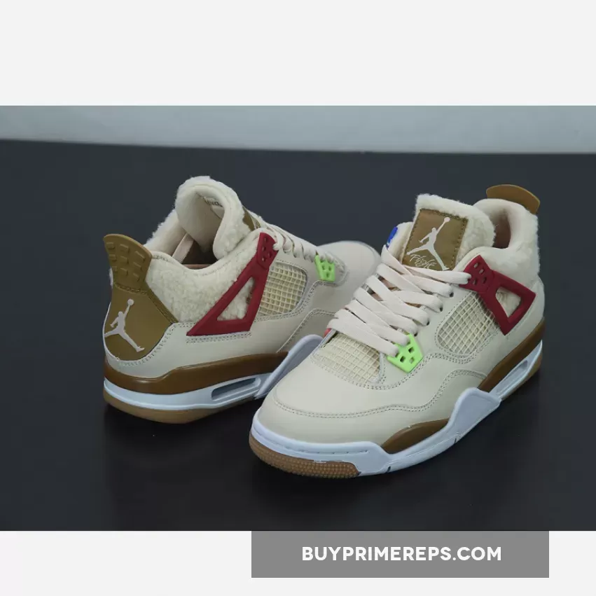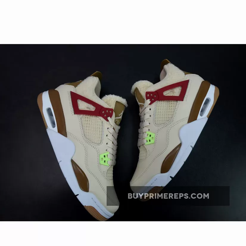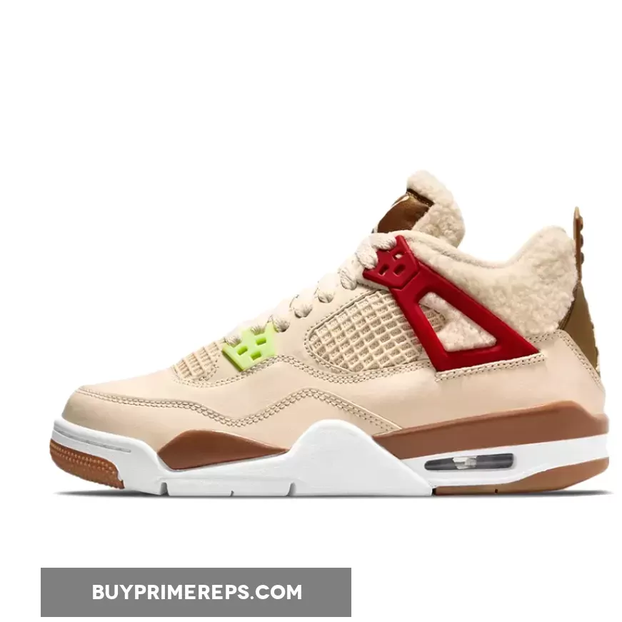 Air Jordan 4 ‘Where The Wild Things Are’ offers a playful & comfy design with subtle nods to the classic book. Light tan leather & mesh upper works well w/brown & neon accents. Perfect for kids who love the story! #AJ4 #WildThings #Nike