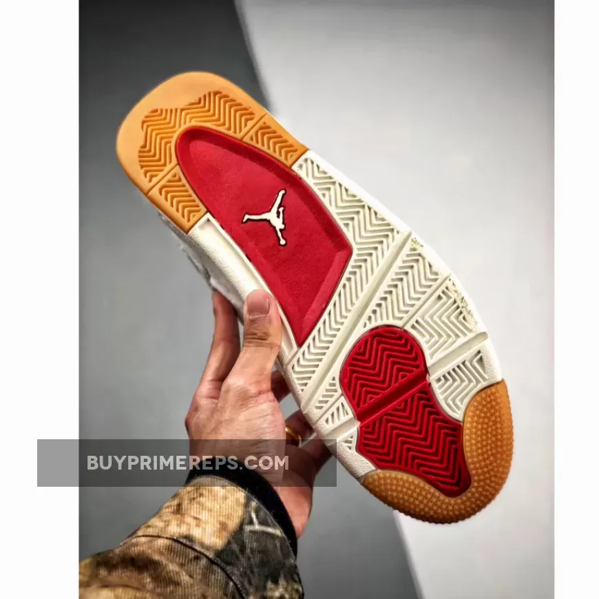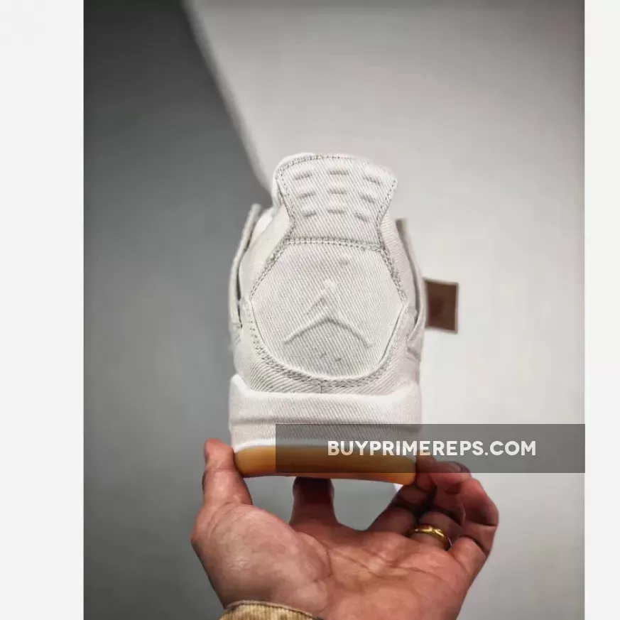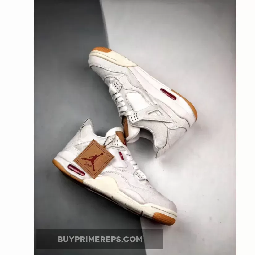 The Levi’s x Air Jordan 4 Retro ‘White Denim’ is completed with a gum rubber outsole, providing traction and durability. The iconic red Levi’s tab is also present, adding a pop of color and serving as a nod to Levi’s heritage.