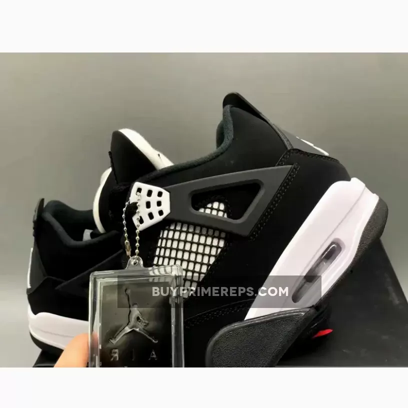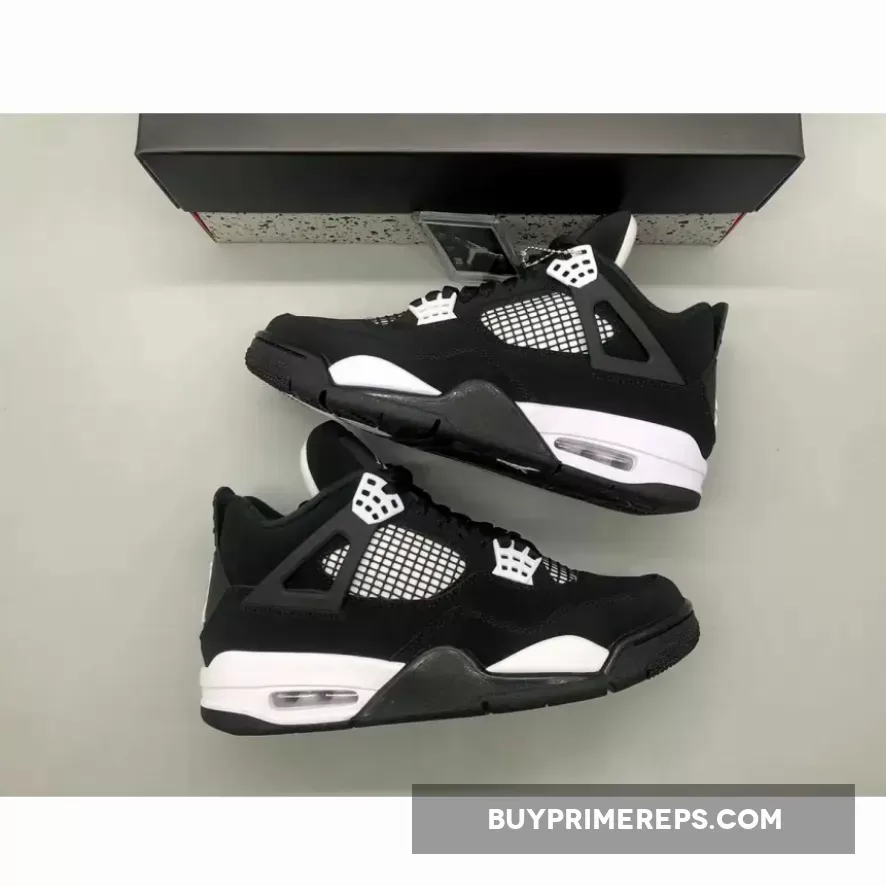 The upper of the Air Jordan 4 “White Thunder” is constructed with premium black nubuck material, giving the shoe a luxurious and high-end feel. The all-black upper is complemented by contrasting hits of white, which can be seen on the lace locks, midsole, and Jumpman logo. This combination of black and white creates a striking visual contrast that is both stylish and eye-catching.