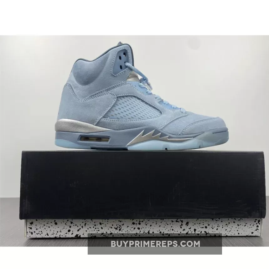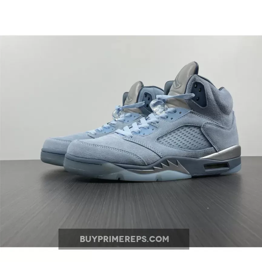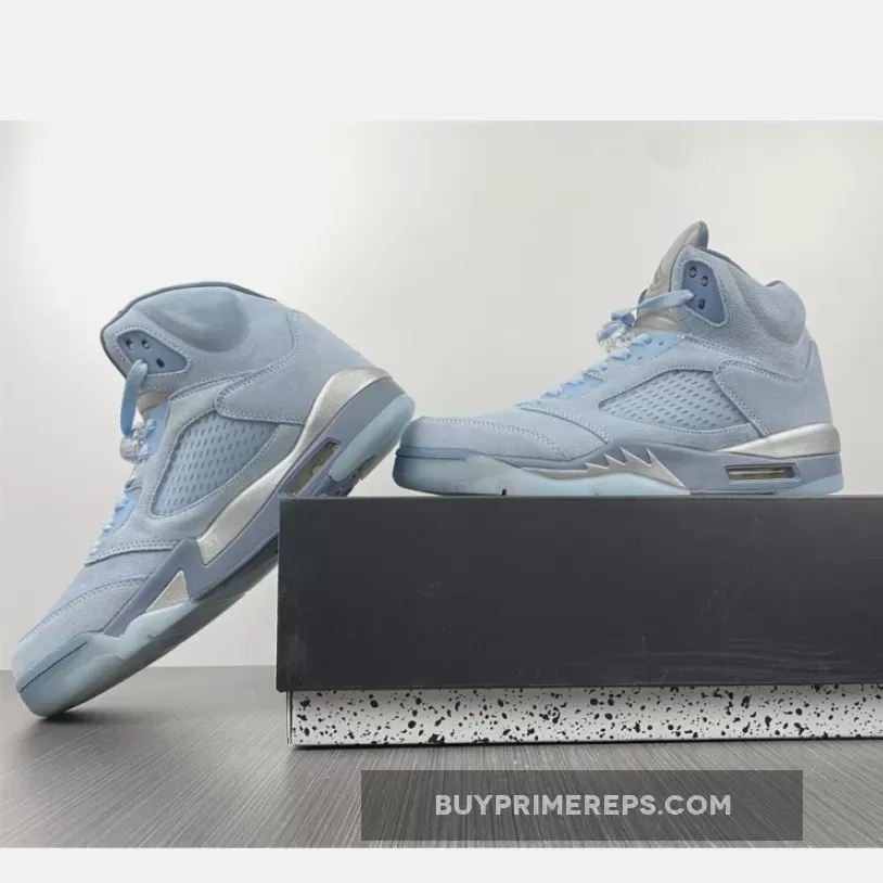 The Air Jordan 5 Retro ‘Blue Bird’ reimagines the classic silhouette with a fresh coat of paint. This vibrant iteration features a suede upper adorned with striking blue tones, punctuated by metallic accents and icy blue details.