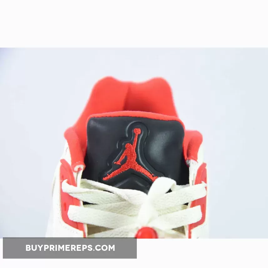 The color scheme of the Air Jordan 5 Retro Low “Chinese New Year” is a perfect blend of Sail, Chile Red, Opti Yellow, and Pearl White. The eyelets, Jumpman logo on the tongue, liner, and shark teeth on the midsole are all adorned in a striking Chile Red, adding a bold and eye-catching element to the design. Black covers the top of the tongue, creating a contrasting and sleek look.