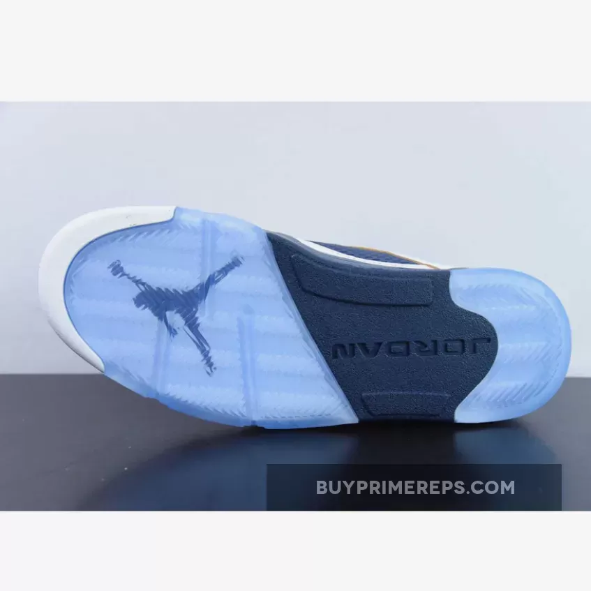 The Air Jordan 5 Low Dunk From Above sits atop a white midsole, which further enhances the shoe’s sleek and modern aesthetic. The outsole is made from translucent icy material, adding a touch of uniqueness and completing the overall design.