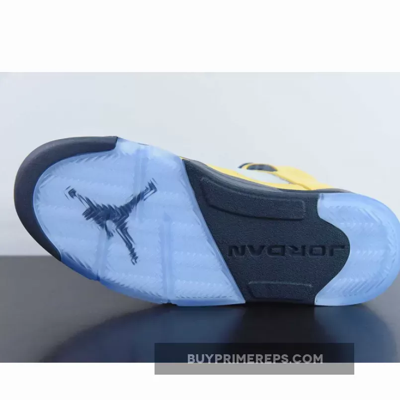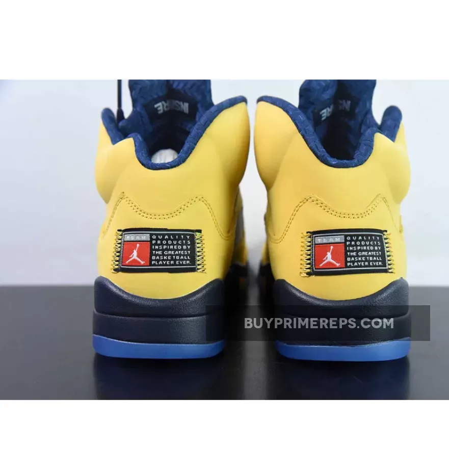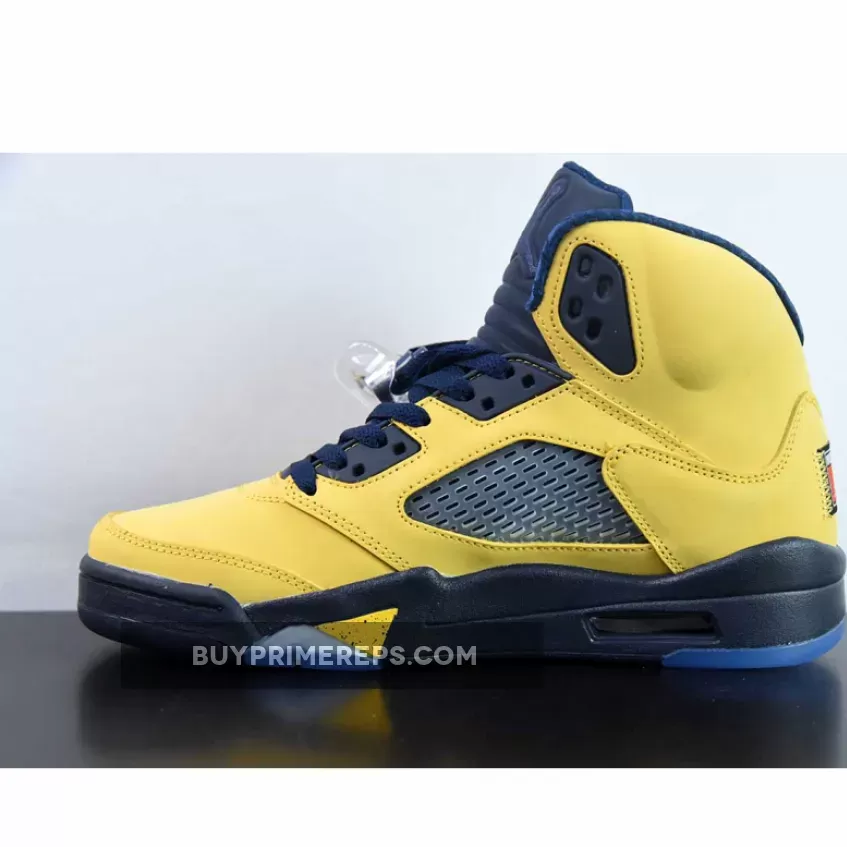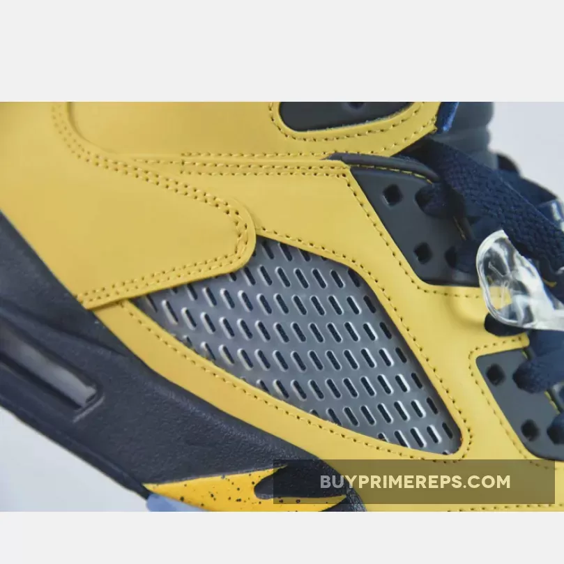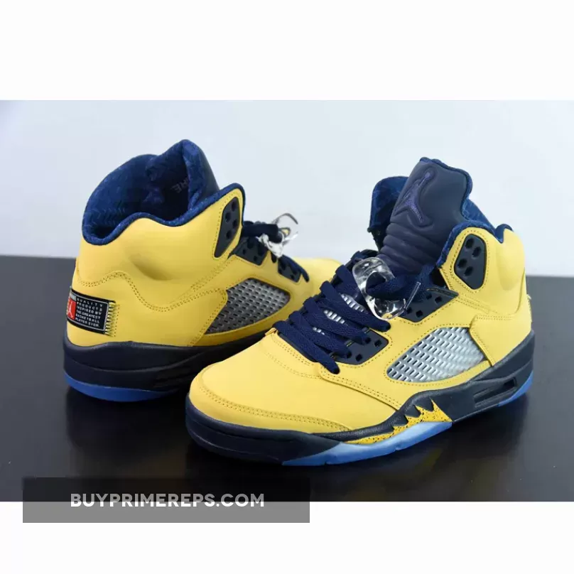 Introducing the Air Jordan 5 SP “Michigan” – a vibrant and stylish sneaker that will surely turn heads on the court or on the streets. This limited-edition colorway takes inspiration from the University of Michigan, featuring a bold yellow nubuck upper with college navy accents.