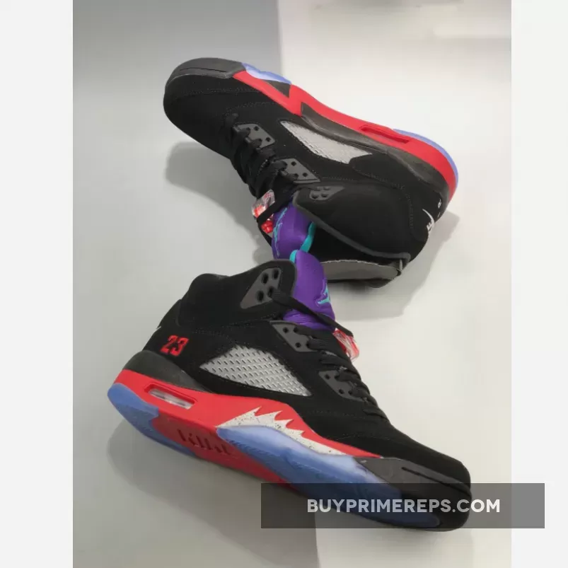 The Air Jordan 5 Top 3 is unlike anything we’ve seen before. It combines elements from three of the silhouette’s most classic colorways – the Black Metallic, Fire Red, and Grape releases – to create a shoe that is truly unique and eye-catching. The upper of the shoe is made from a combination of leather, nubuck, and suede, with a stealthy black color taken from the Black Metallic colorway. The iconic white, green, and purple accents found on the tongue pay homage to the Grape colorway, which is considered one of the most famous Jumpman shades to date.
