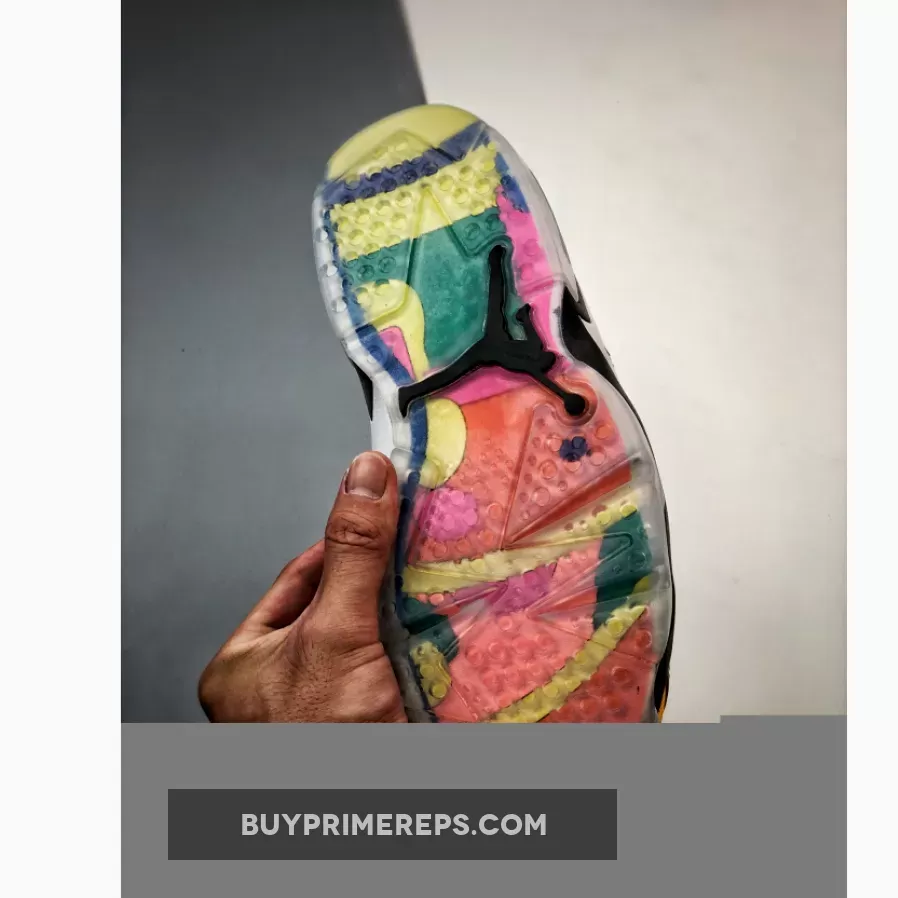 The outsole of the Air Jordan 6 Low Dongdan is translucent and features a multi-colored reflexology-inspired pattern. This unique pattern is inspired by the meridian of the sole and adds another layer of visual interest to the shoe.