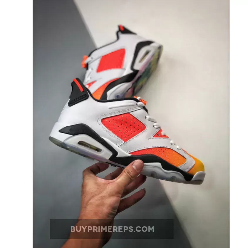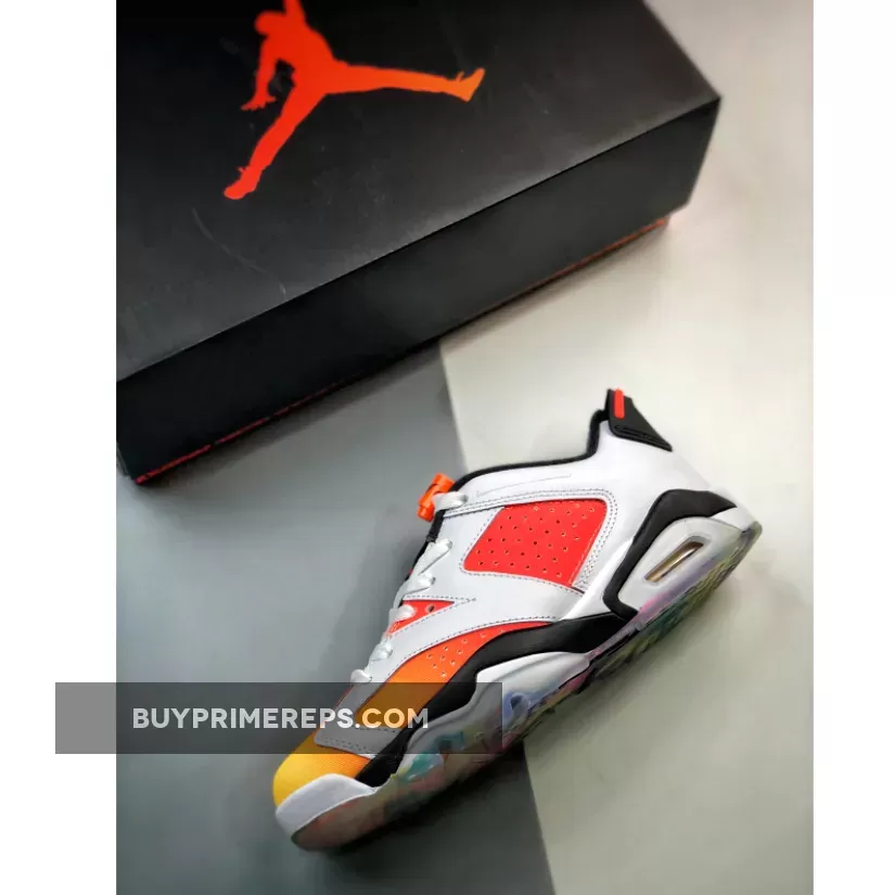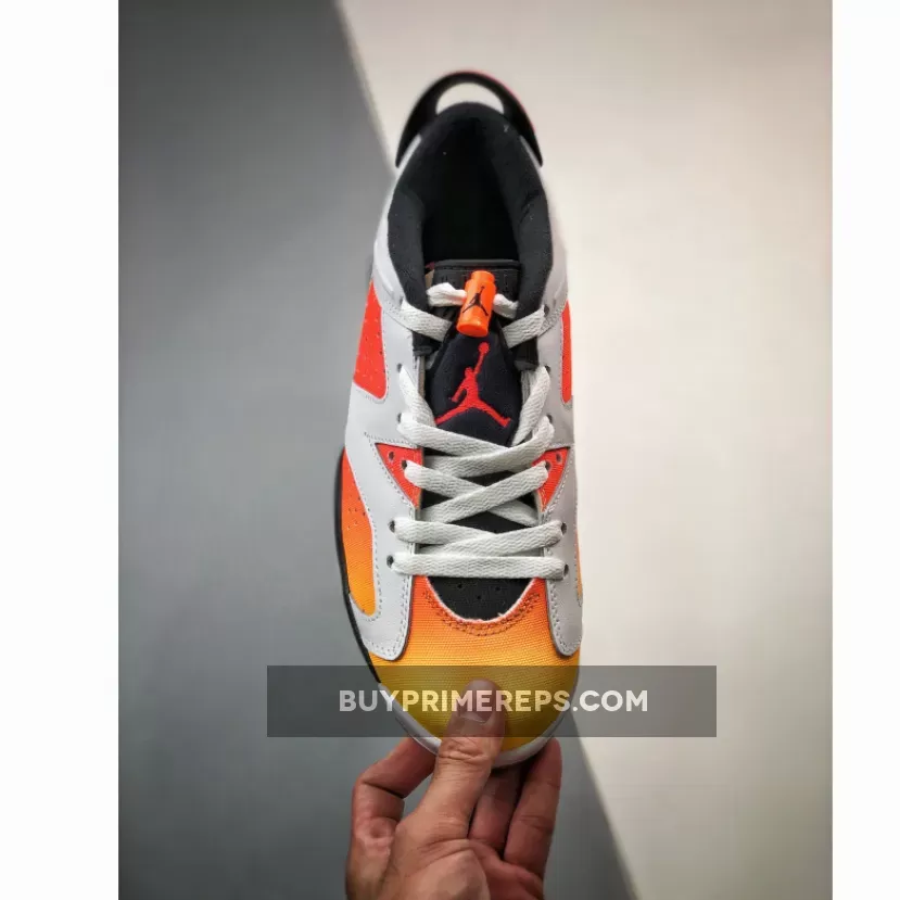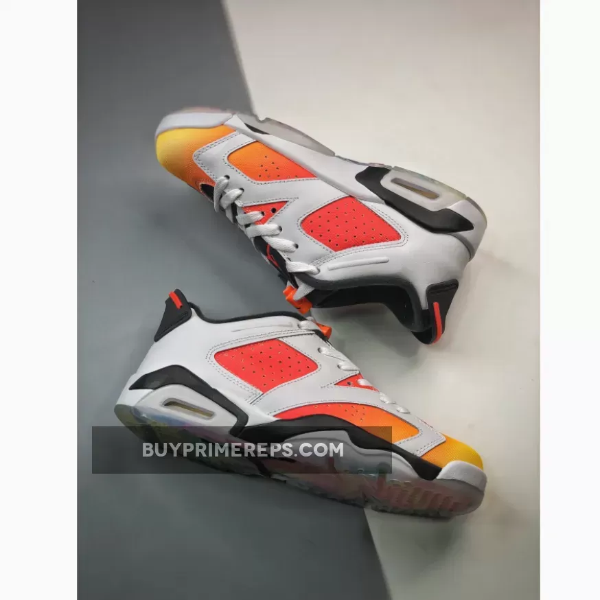 The Air Jordan 6 Low Dongdan features a striking color scheme that captures the essence of the late summer afternoons over the Dongdan stadium. The upper of the shoe is constructed with a combination of white leather overlays and an eye-catching orange and red gradient canvas base. This gradient motif is meant to symbolize the afterglow of the setting sun shining on the stadium, creating a mesmerizing visual effect.