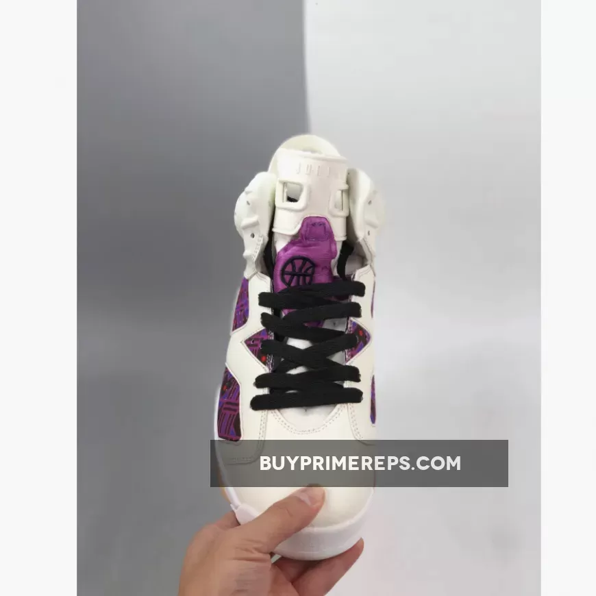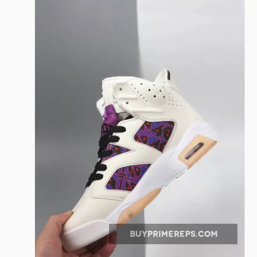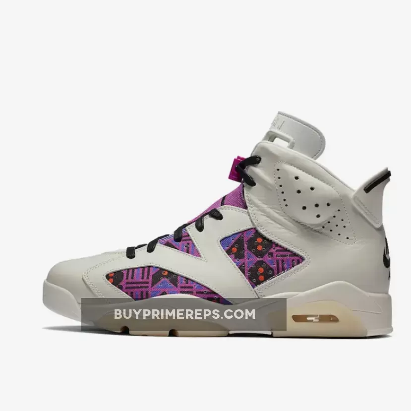 The Air Jordan 6 “Quai 54” is a true standout with its unique design and vibrant color scheme. The upper features a Sail leather construction with patterned underlays and insoles, adding a touch of sophistication to the overall look. The shoe is adorned with “Quai 54” logos on the tongues and heels, showcasing its exclusive status.