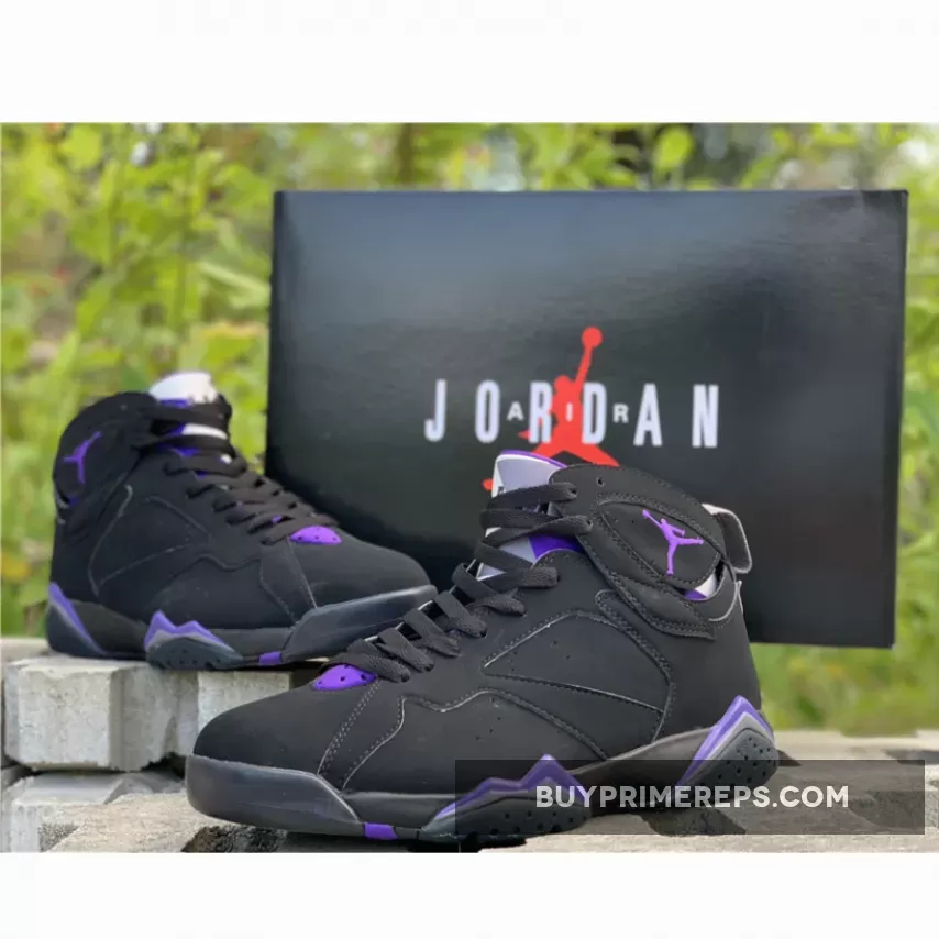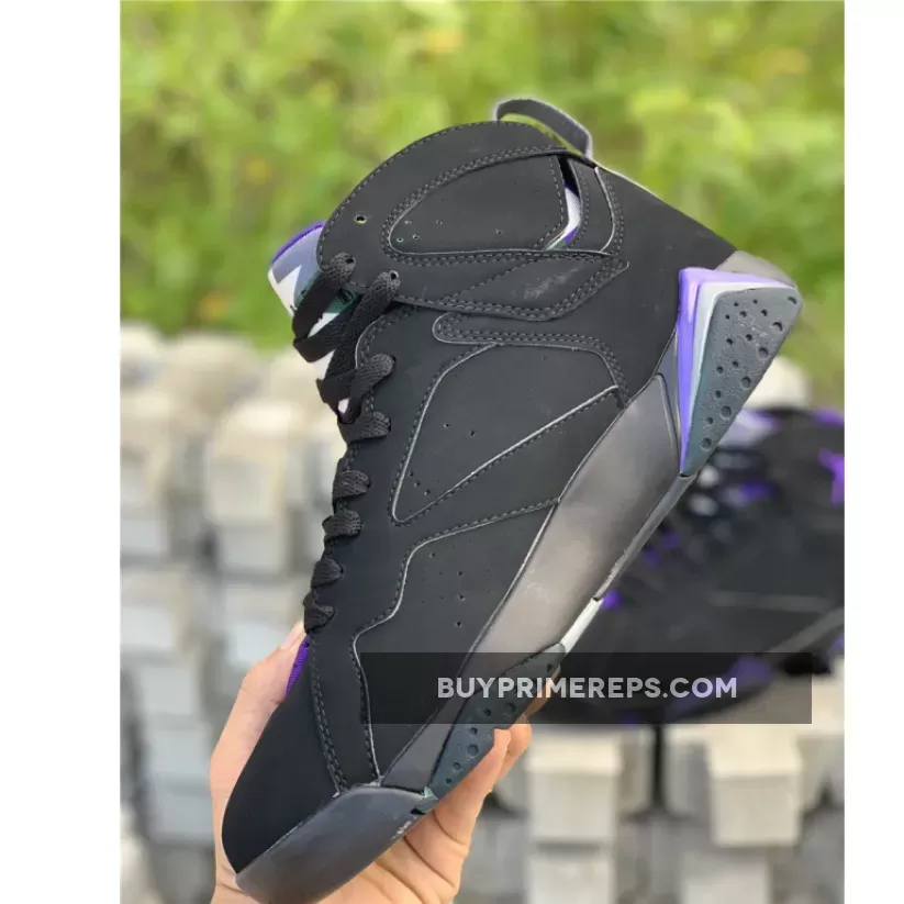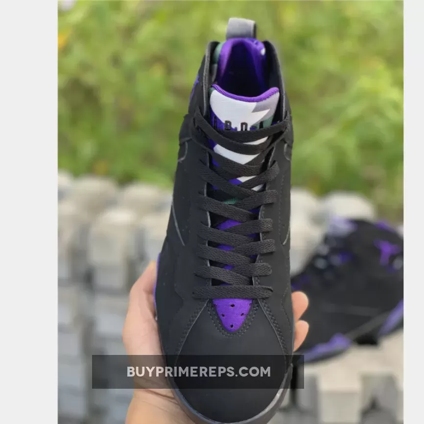 Designed in collaboration with Jordan Brand, the Air Jordan 7 “Ray Allen” features a unique color scheme that combines elements from Allen’s original player exclusives during his time with the Milwaukee Bucks. The shoe comes in a striking Black, Fierce Purple, and Dark Steel Grey colorway that captures the essence of the Bucks’ team colors from the 1990s and early 2000s.