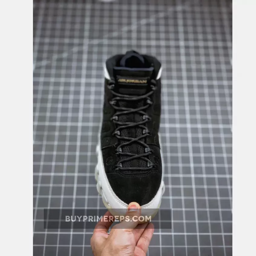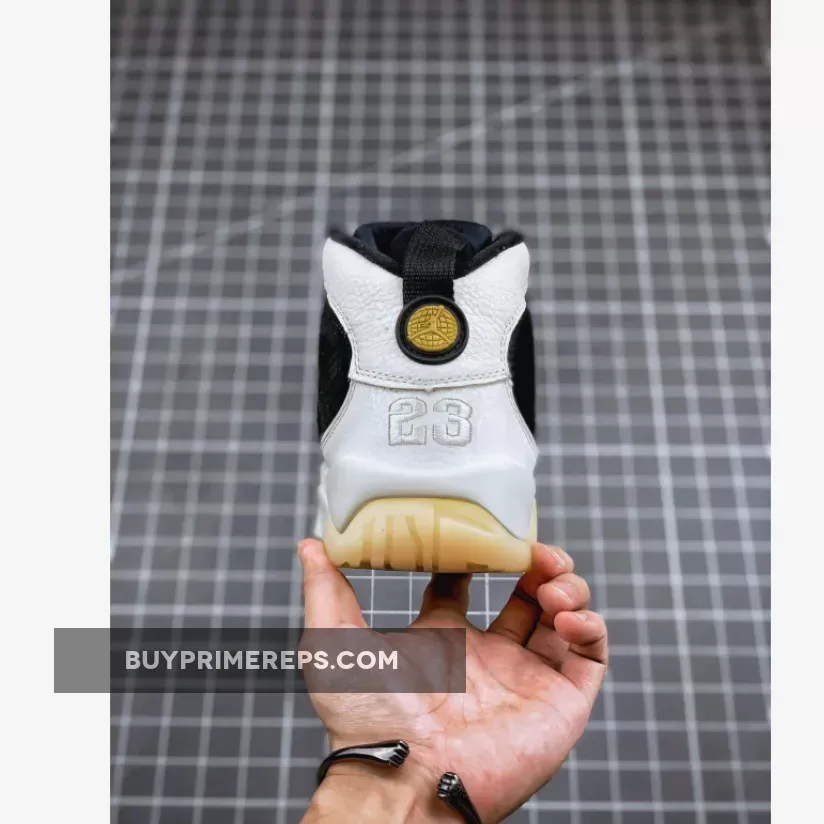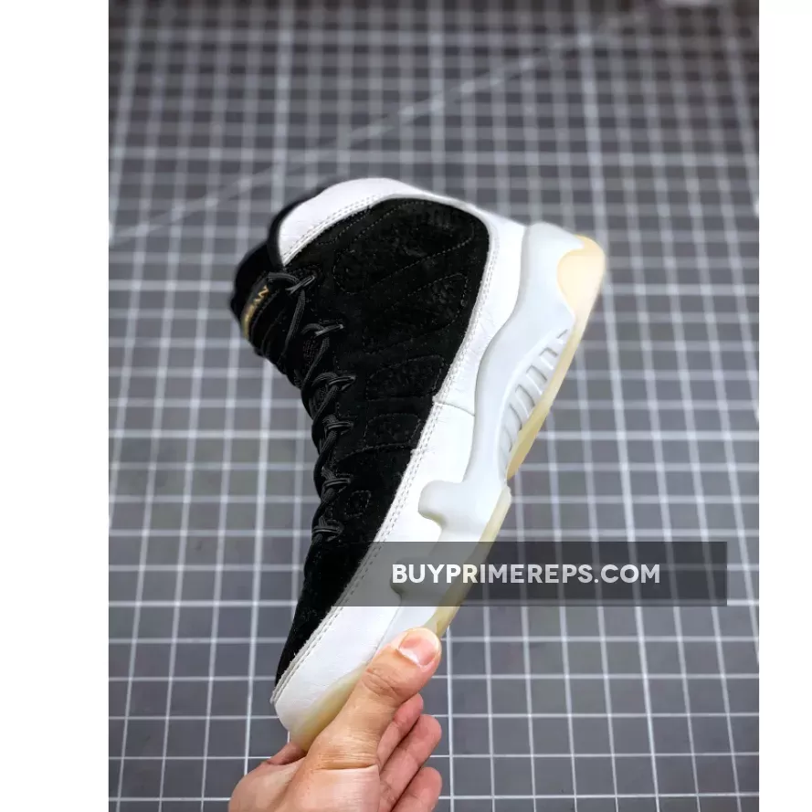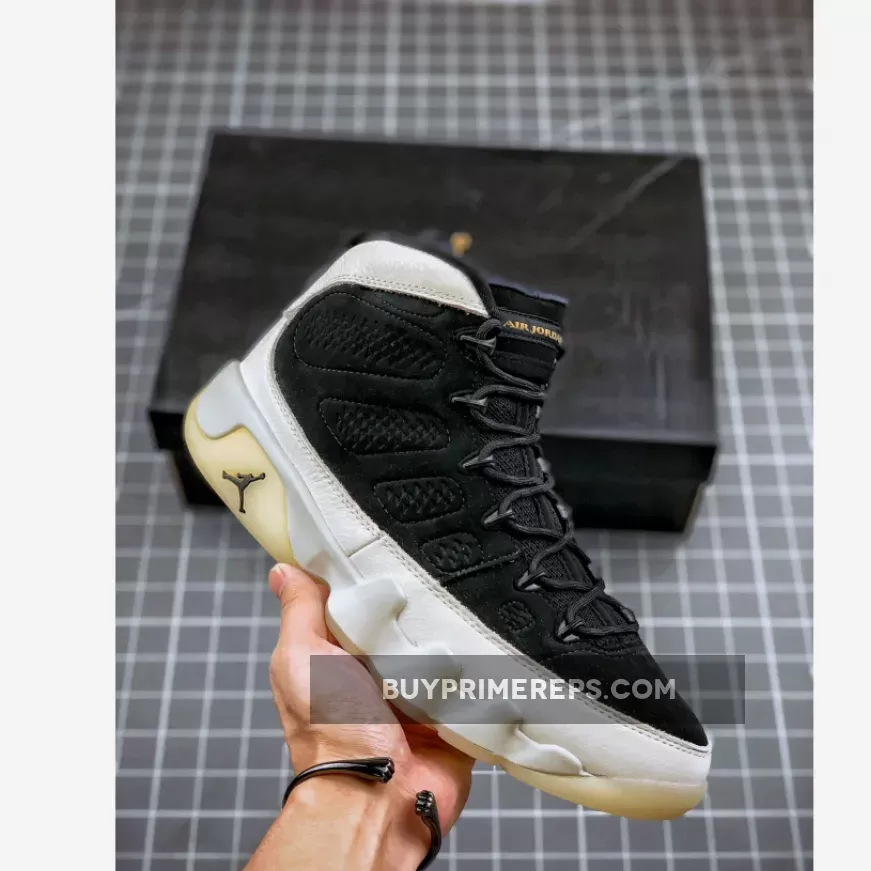 The Air Jordan 9 “LA” is a stylish and eye-catching sneaker that pays homage to the city of Los Angeles. With a sleek black, summit white, and metallic gold color scheme, this shoe is sure to turn heads wherever you go. The upper is constructed with a combination of black nubuck and summit white leather, creating a contrasting and visually appealing look.