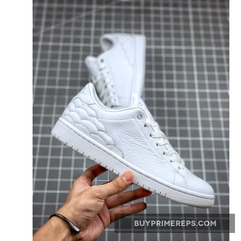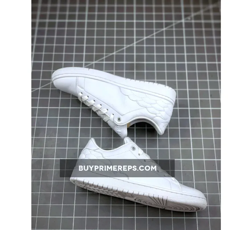 Crafted from premium white tumbled leather, the Jordan 1 Low Centre Court White exudes a timeless and classic appeal. What sets this particular colorway apart is its lack of branding, with no Nike Swoosh or any other visible logos. However, upon closer inspection, you’ll notice an intricate overlay at the heel that is inspired by Jordan Brand’s iconic winged basketball motif, a design element that has been synonymous with the brand since the 1980s. This unique touch adds a subtle yet distinctive flair to the shoe.