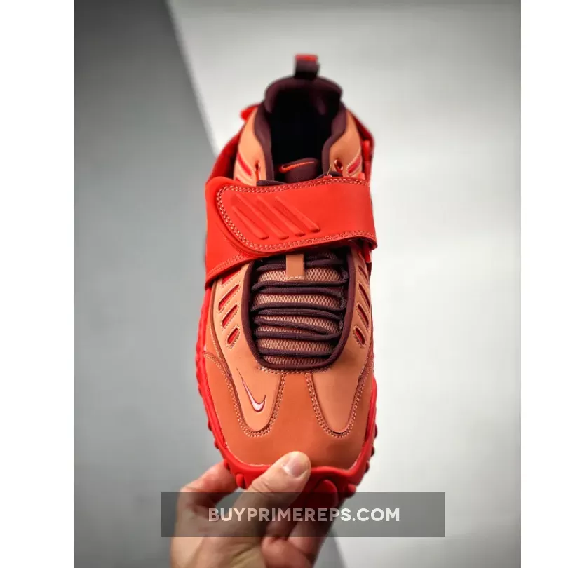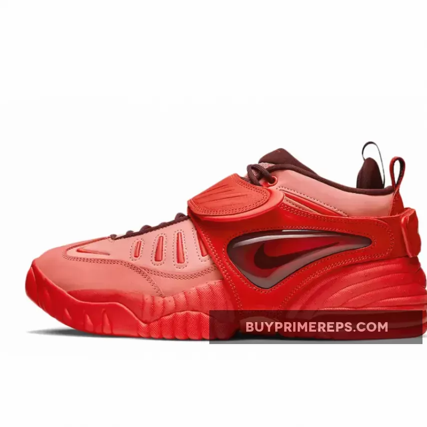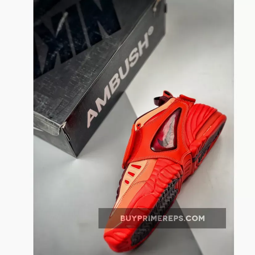The AMBUSH x Nike Air Adjust Force features a retro basketball silhouette as its base, but with a modern twist. The upper is crafted from nubuck and is predominantly covered in various shades of orange, ranging from bright hues to deeper, almost burnt brown accents. This vibrant color palette gives the sneaker a bold and energetic look that is perfect for those who want to make a fashion statement.