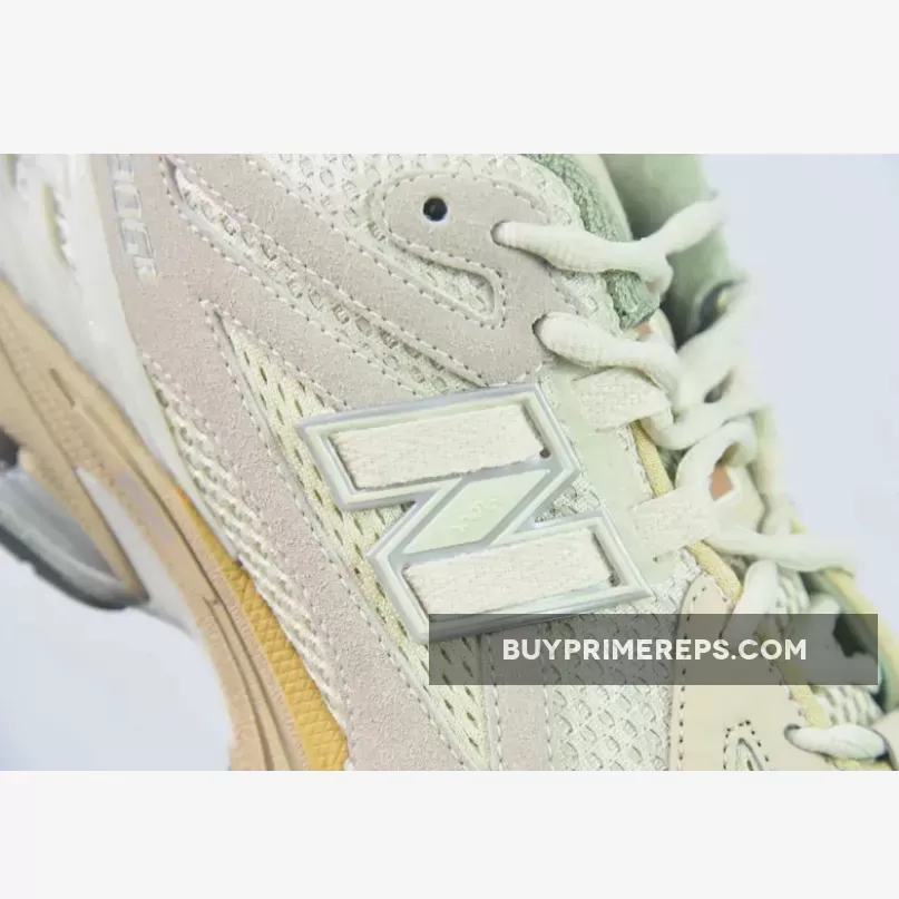 💡 The materials, color palette, and intricate features have been updated with washed suede and wax-treated outsoles, giving the 1906R a vintage charm. The beige variant boasts lime green accents on the lining and a striking yellow sole, while the blue version features a subtle gradient in shades of gray, resulting in a transparent look.