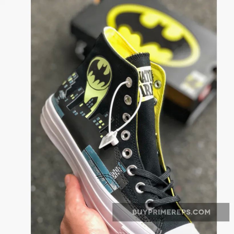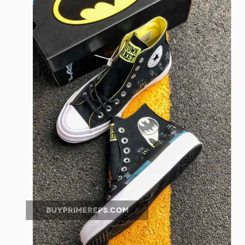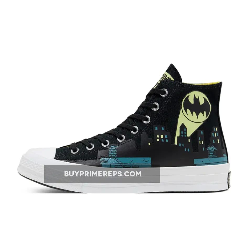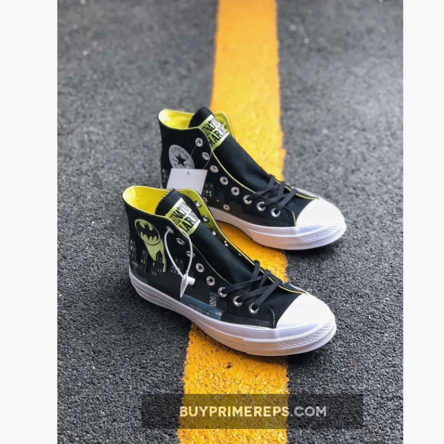 This Chuck 70 High Top features a black colorway with yellow and white accents, giving it a bold and eye-catching look. The upper is made of a durable canvas material, ensuring longevity and comfort. The iconic Batman logo is prominently displayed on the side of the shoe, adding a touch of superhero flair.