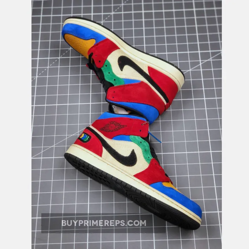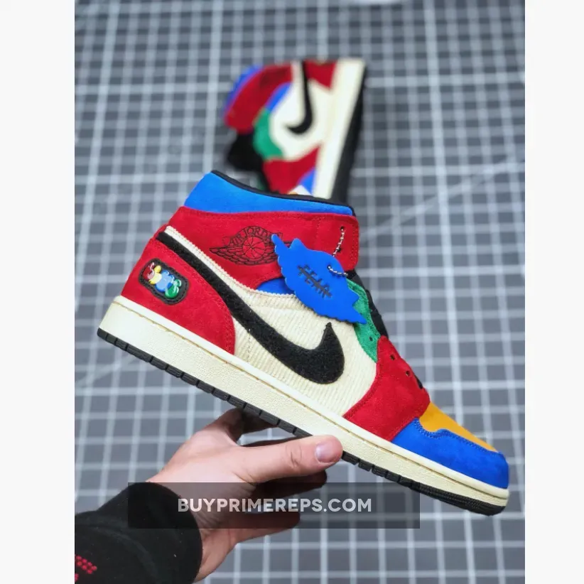 As part of Jordan Brand’s “Fearless Ones” collection, the Blue The Great x Air Jordan 1 Mid “Fearless” is a true work of art. Designed by the LA-based artist Blue The Great, this sneaker features a colorful upper constructed in a mix of suede and corduroy. The combination of these materials adds depth and texture to the shoe, giving it a unique and eye-catching look.